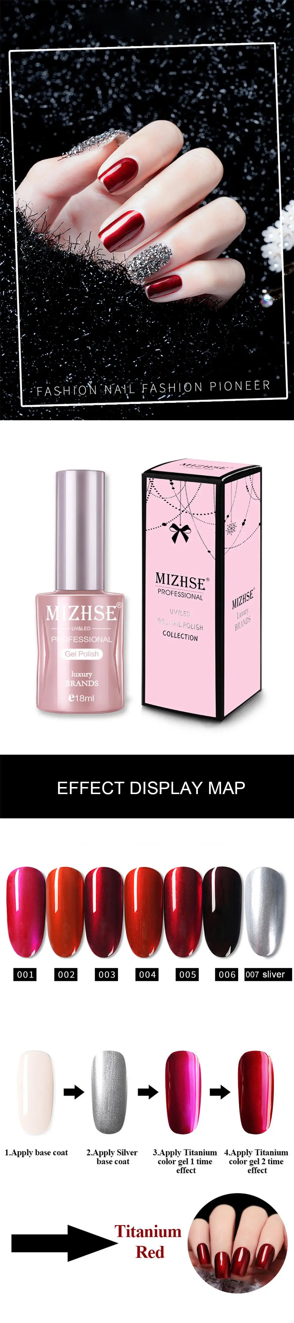 Зеркальный металлический лак MIZHSE для ногтей, серебристая основа, УФ-лак для ногтей красного цвета, металлический яркий акриловый цвет, Гель-лак для ногтей