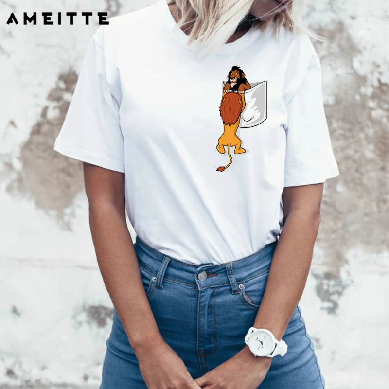 Женская футболка с принтом Lion king, белая Универсальная футболка с принтом в виде Симбы и карманов, с забавным шрамом, дяди хакуны, Матата