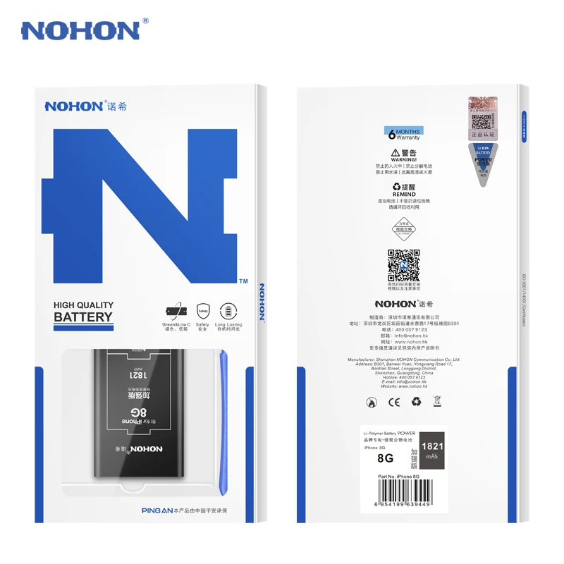 Аккумулятор NOHON для iPhone XS MAX, XR, 8, 7, 6, 6S Plus, X, SE