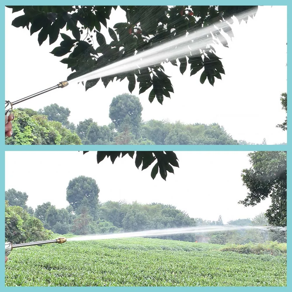 【Многофункциональный поливочный узор 】гибкий и регулируемый поток воды идет от тонкого тумана, умеренного распыления или струйного потока, вращая головку распылителя шланга слева направо. Регулируемое сопло может удовлетворить различные потребности в поливе для любителей сада.