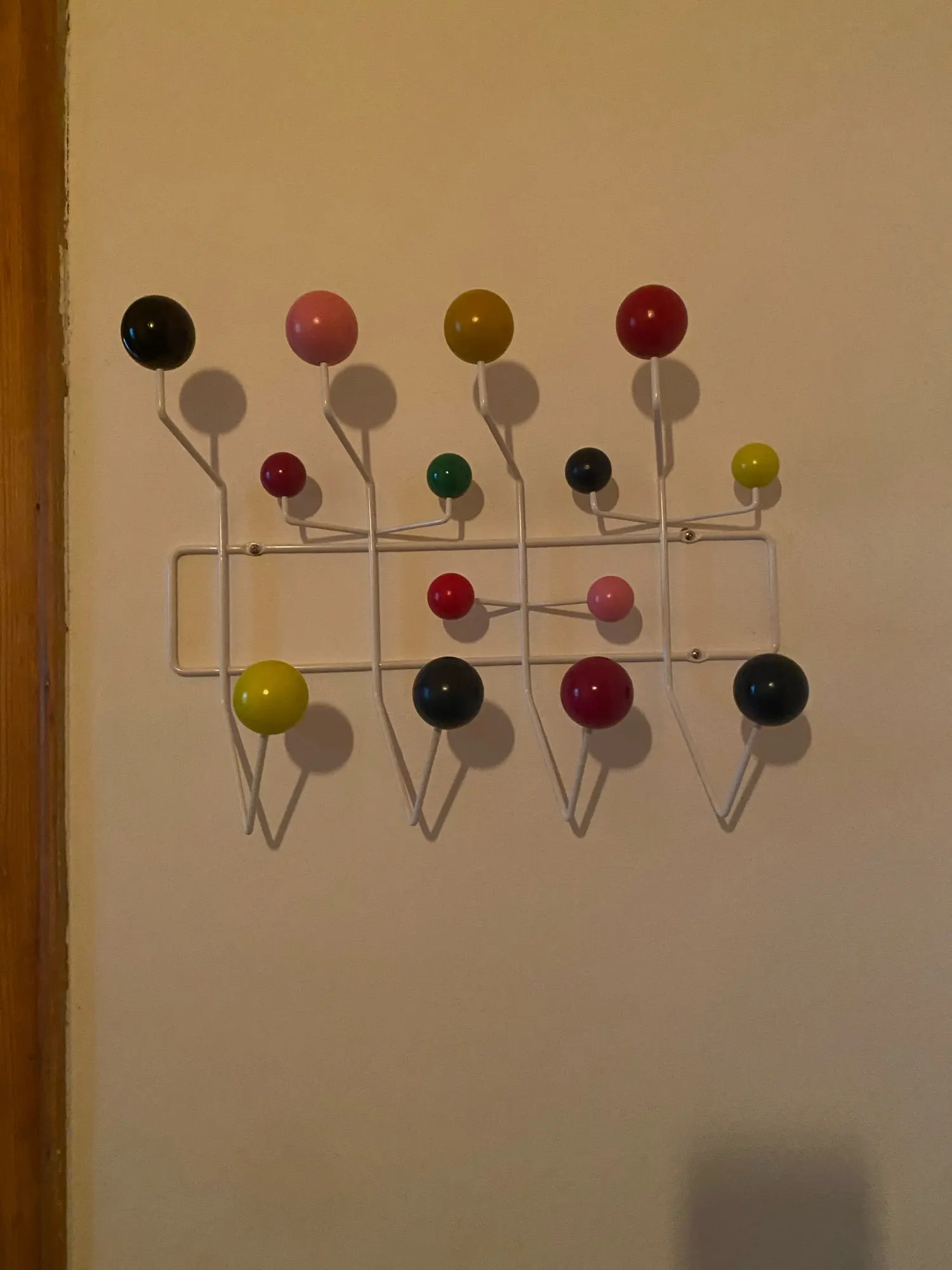 Великолепная полка для пальто с деталями из настоящего дерева. Он был достаточно упакован в коробку, но все же некоторые металлические детали были согнуты. Возможно, было бы хорошей идеей добавить немного пенопласта или другого наполнения внутри коробки. Поставляется с подходящими черными винтами, что является Огромным плюсом.