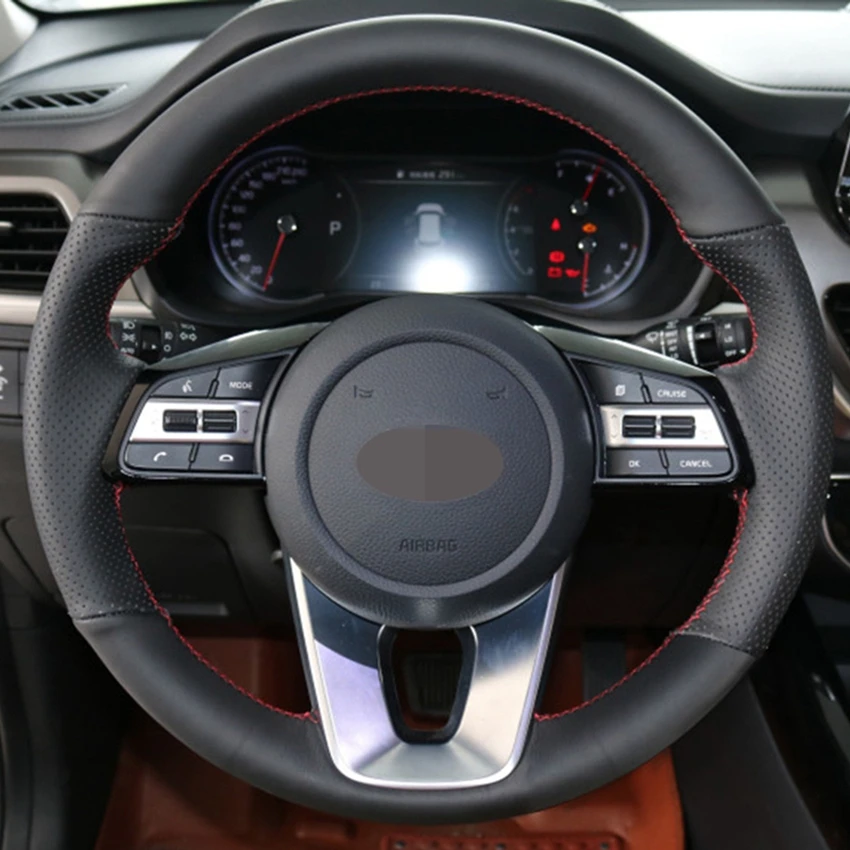 Черный чехол на руль из искусственной кожи, прошитый вручную чехол на руль для Kia forte s чехлы рулевого колеса автомобиля KIA Optima 2019 2018