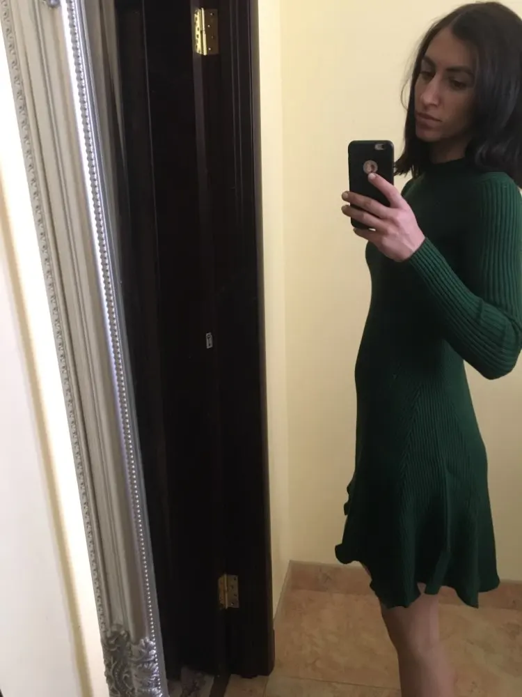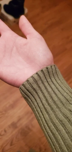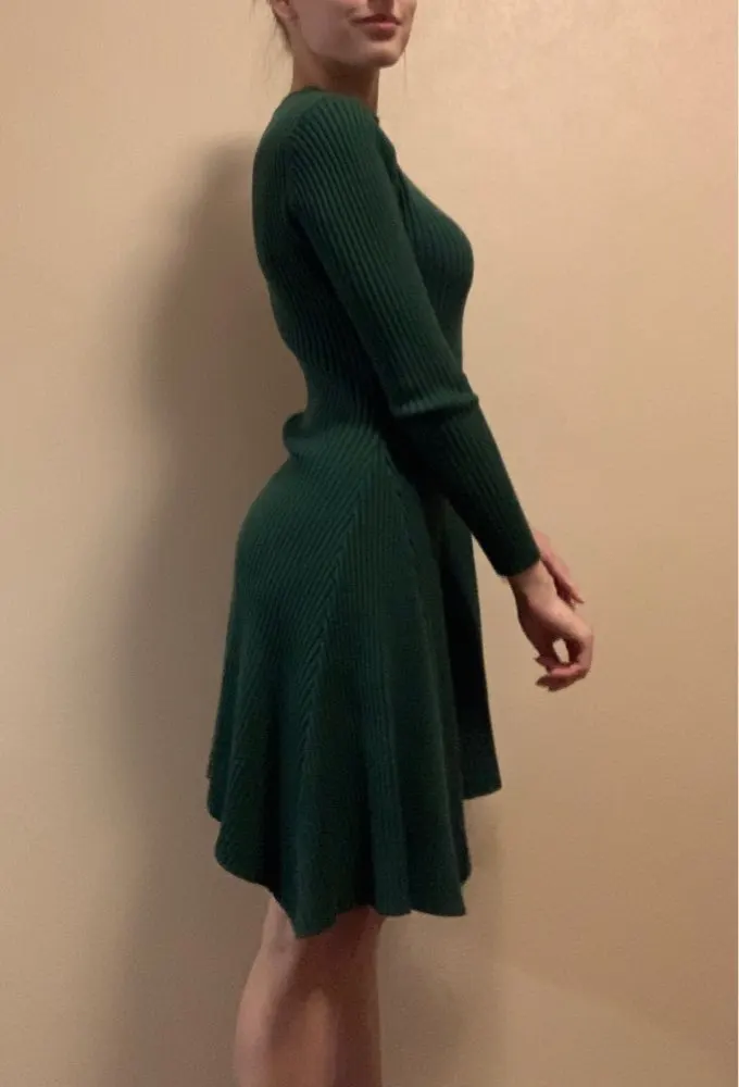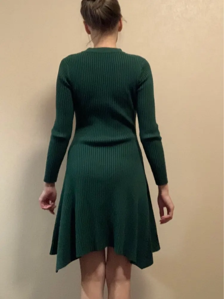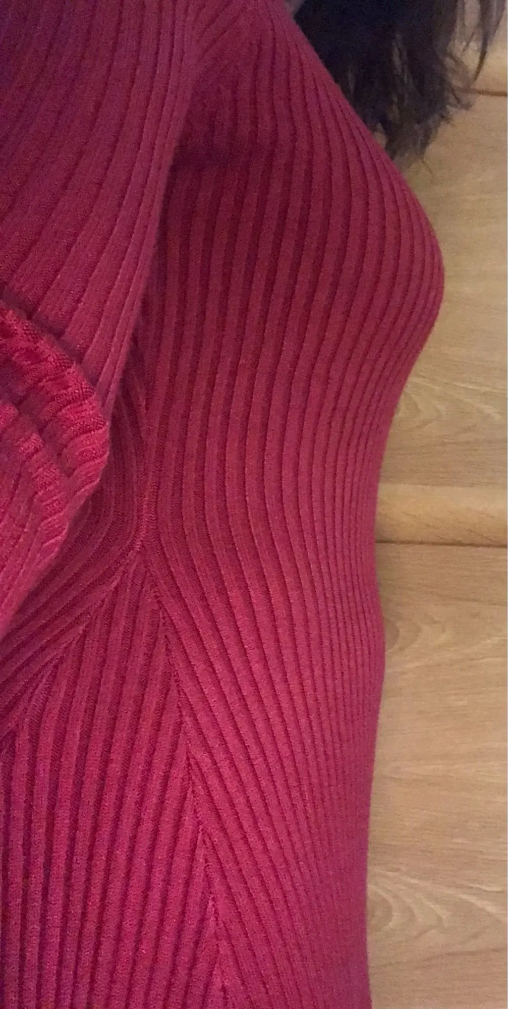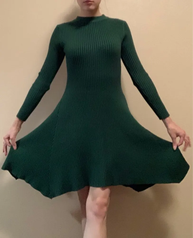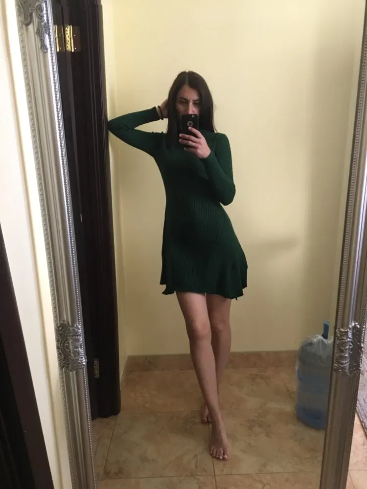 Платье классное, мягкое, приятное к телу, теплое. Цвет шикарный. На моей фигуре смотрится великовато (параметры: ог80, от61, об 86), но мне оно всё равно нравится. Пришло довольно быстро, около 2х недель. Фото после дня носки, немного вытянулись в локтях и на спине складочка, но так всегда бывает с такими платьями.