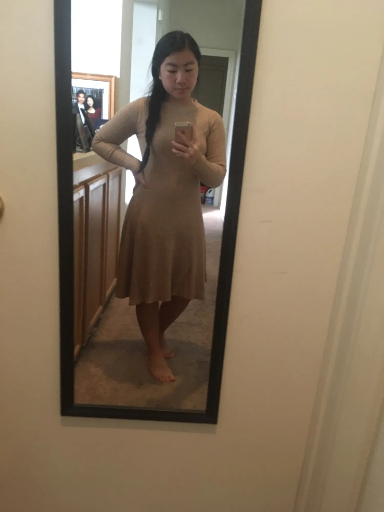 Комментаторы, кто писал, что этот оттенок белый: вы слепые? Я из-за ваших комментов взяла именно этот цвет, думая, что он слегка бежевый, а не ярко белый. Но нет, он прям натуральный беж. Цвет мне нравится, конечно хотела белый, но что поделать. На параметры 168см 92/63/97 платье сидит хорошо. Рукава 3/4, длина до середины бедра. В талии большое, с поясом самое то. Подойдет для девушек, у кого фигура песочные часв или груша. На остальных смотрится плохо, уж извините. Платье подчёркивает грудь, плечи и талию. Те, у кого широкие ляшки (как у меня) - подойдет отлично. Теплое и приятное к телу. До Ростова-на-Дону дошла посылка за полторы недели
