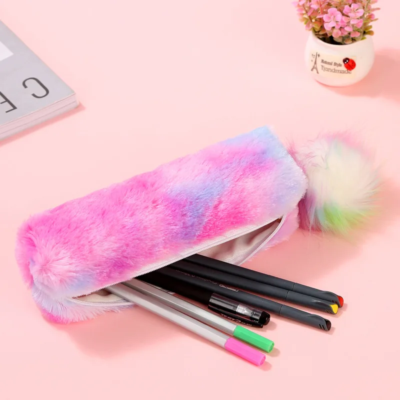 Новинка 2019, плюшевый пенал радужного цвета, Студенческая вместительная сумка для хранения канцелярских принадлежностей, Женский плюшевый пенал с блестками