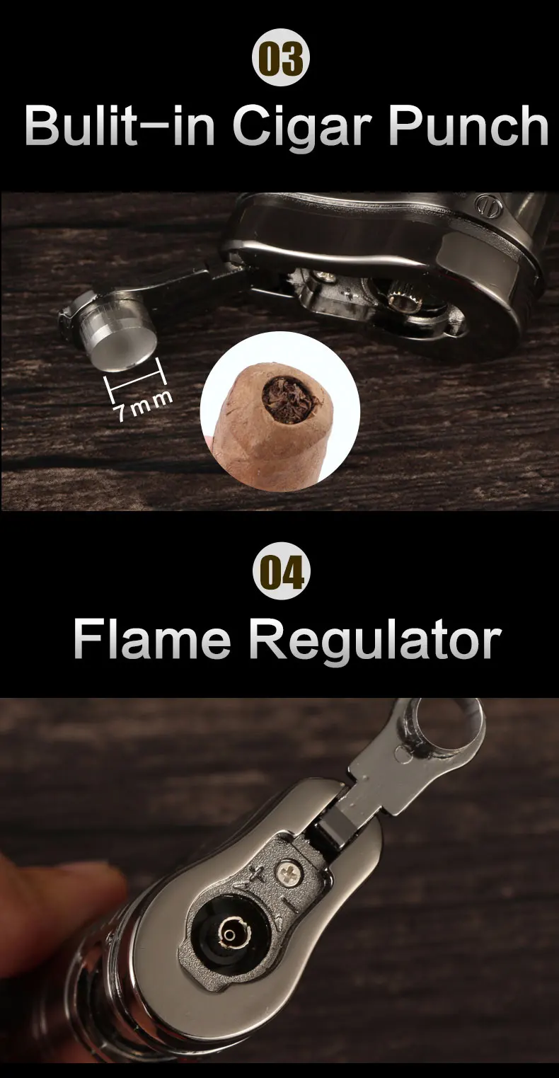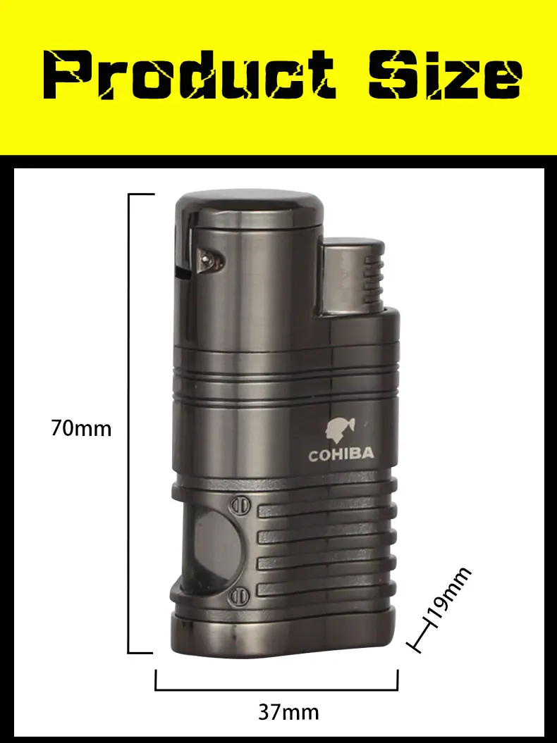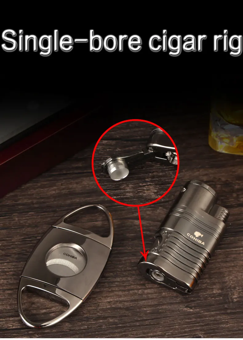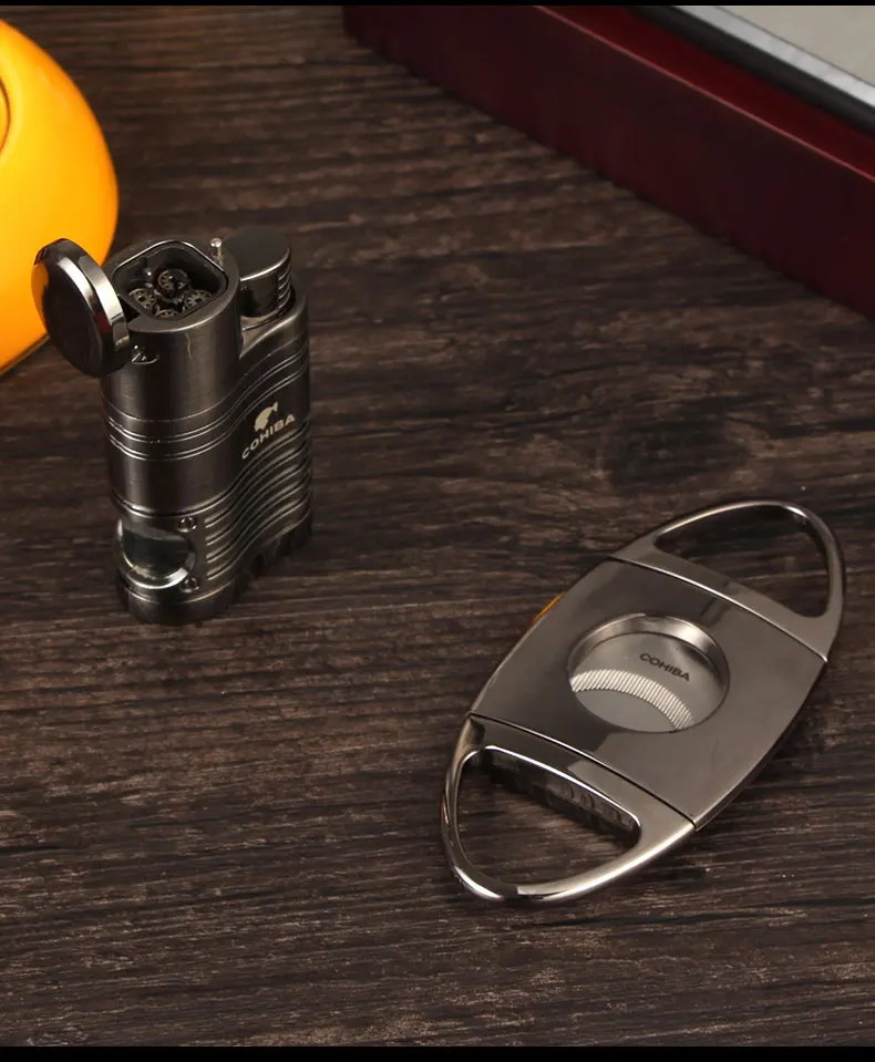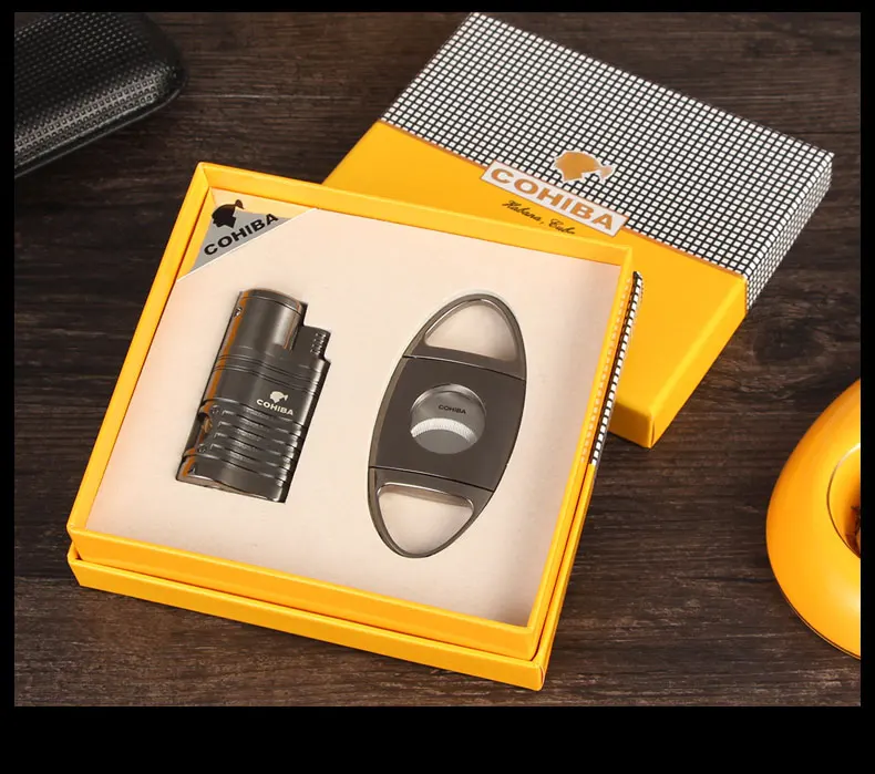 Металлическая ветрозащитная трехструйная фонарь жигалка для сигар COHIBA с дыроколом из нержавеющей стали