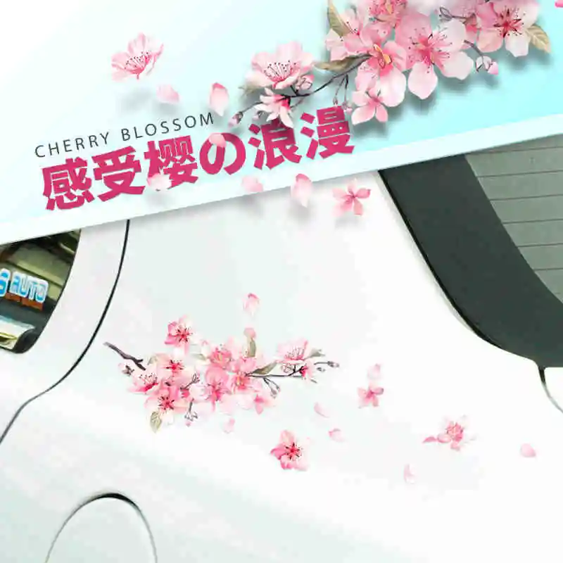 Виниловая наклейка Noizzy с изображением восточных цветов вишни, любовь, автомобиль, цветочная подвеска, розовая Наклейка на окно, автомобильный романтический декор
