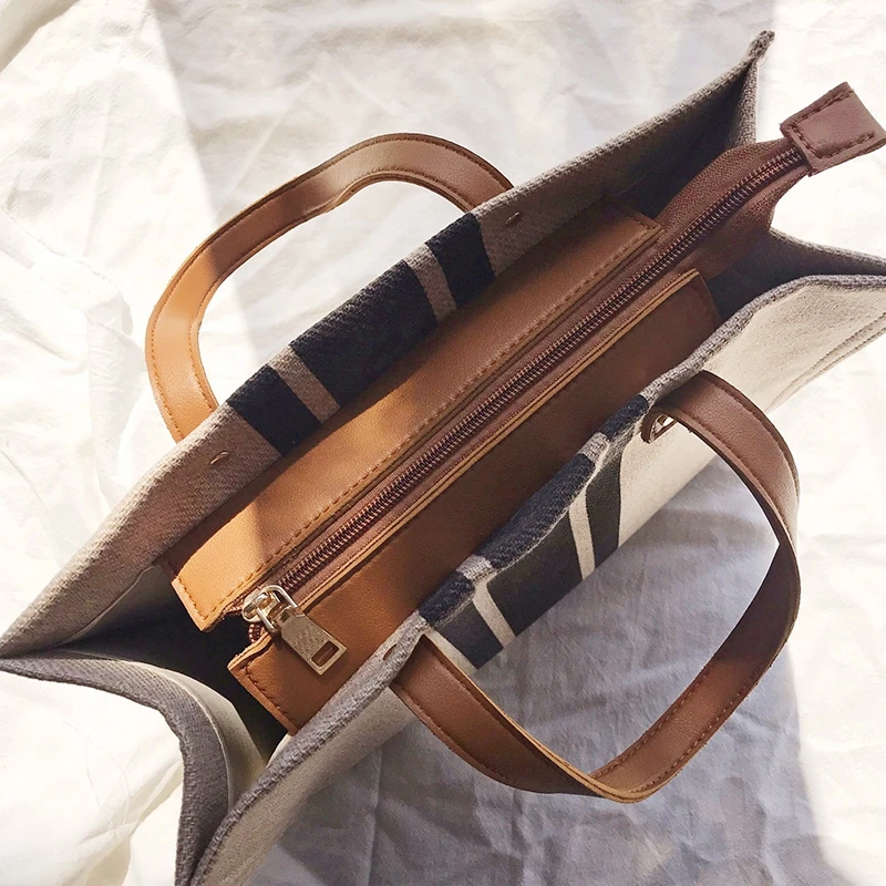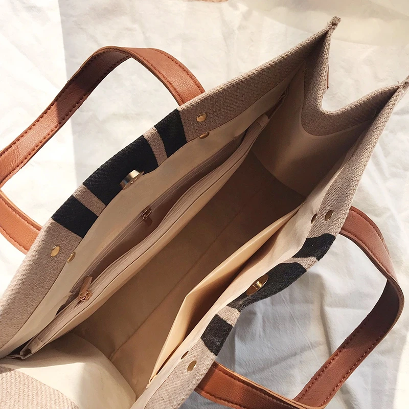 Простая модная Женская Полосатая Холщовая Сумка-тоут, вместительная...
