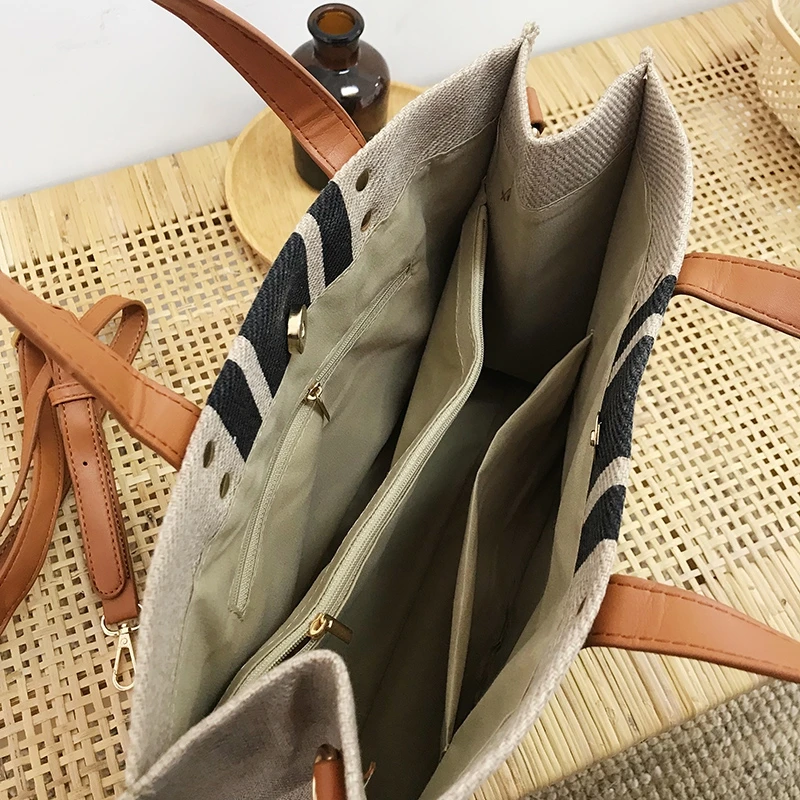 Женская Холщовая Сумка в полоску, дизайнерский тоут на ремне, Повседневная Соломенная Сумка через плечо, вместительный деловой портфель в офисном стиле