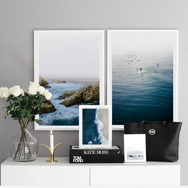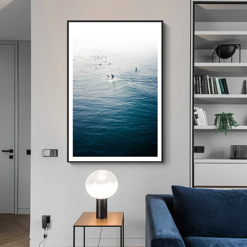 Настенная картина синее море, скандинавский рисунок на холсте морской пейзаж, пейзаж, декоративное украшение для комнаты