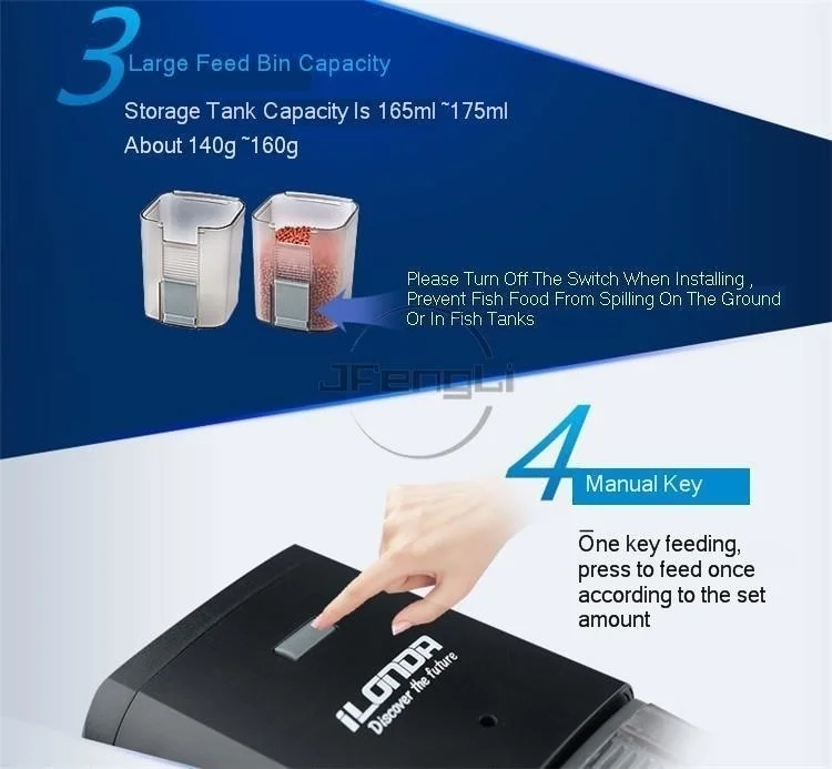 Подходит для различных рыбных продуктов питания: гранулы, порошковые корма, тонкие корма, чешуйчатая подача, стержень корма, вафельные корма и другие продукты питания рыб и черепахи