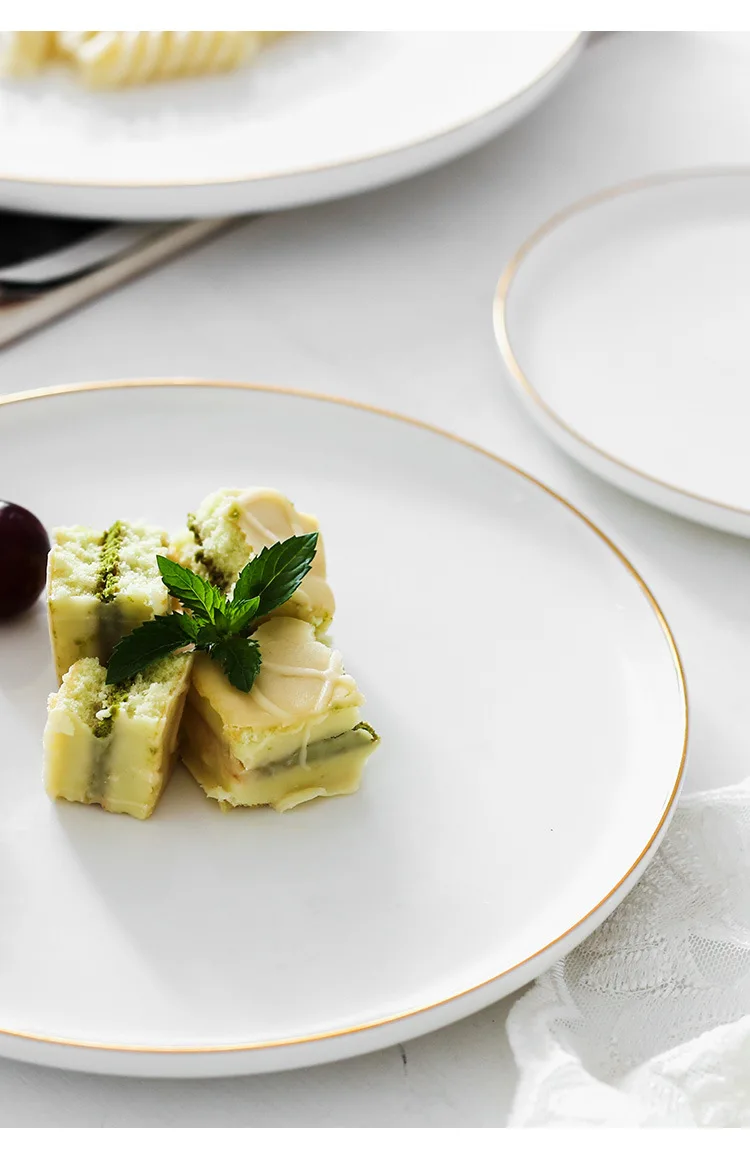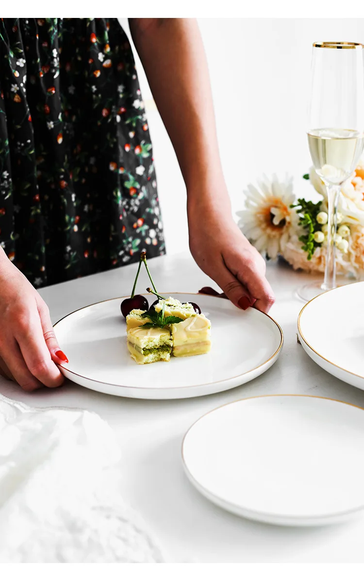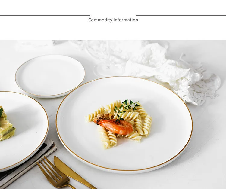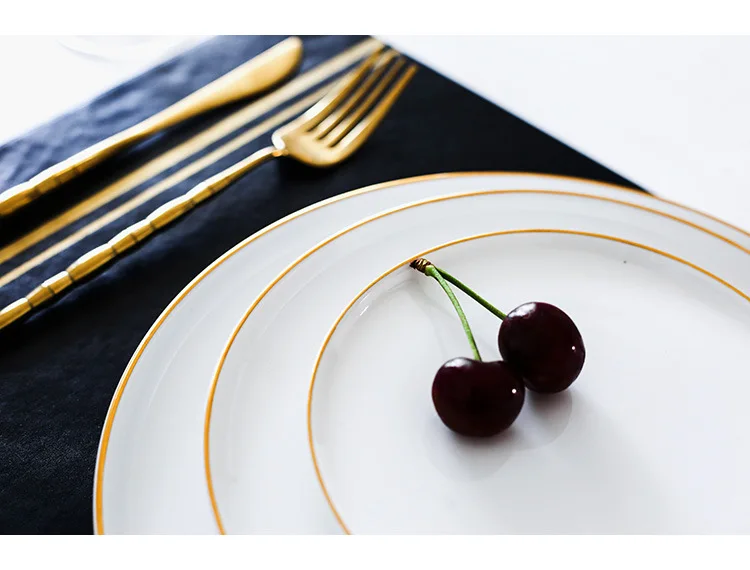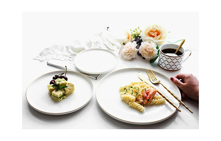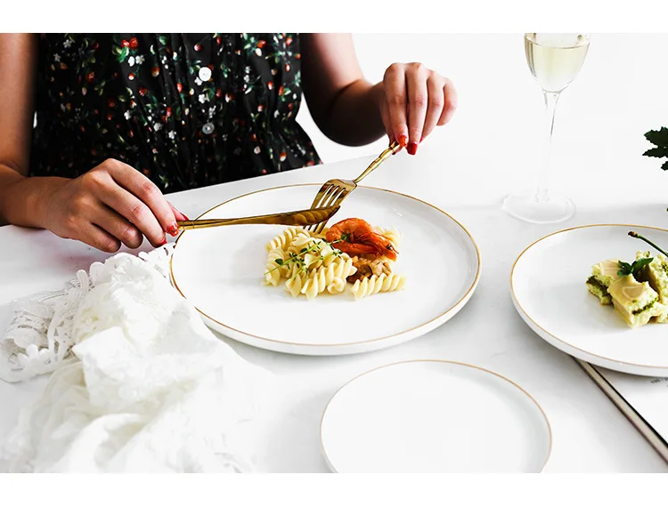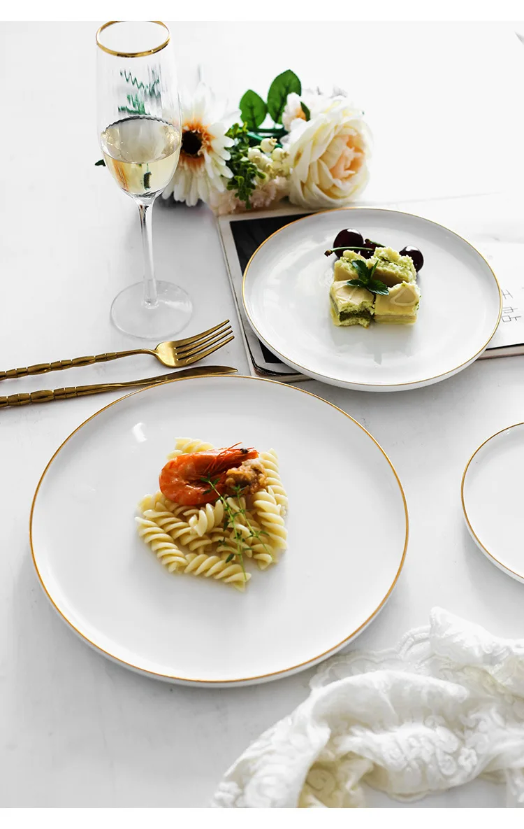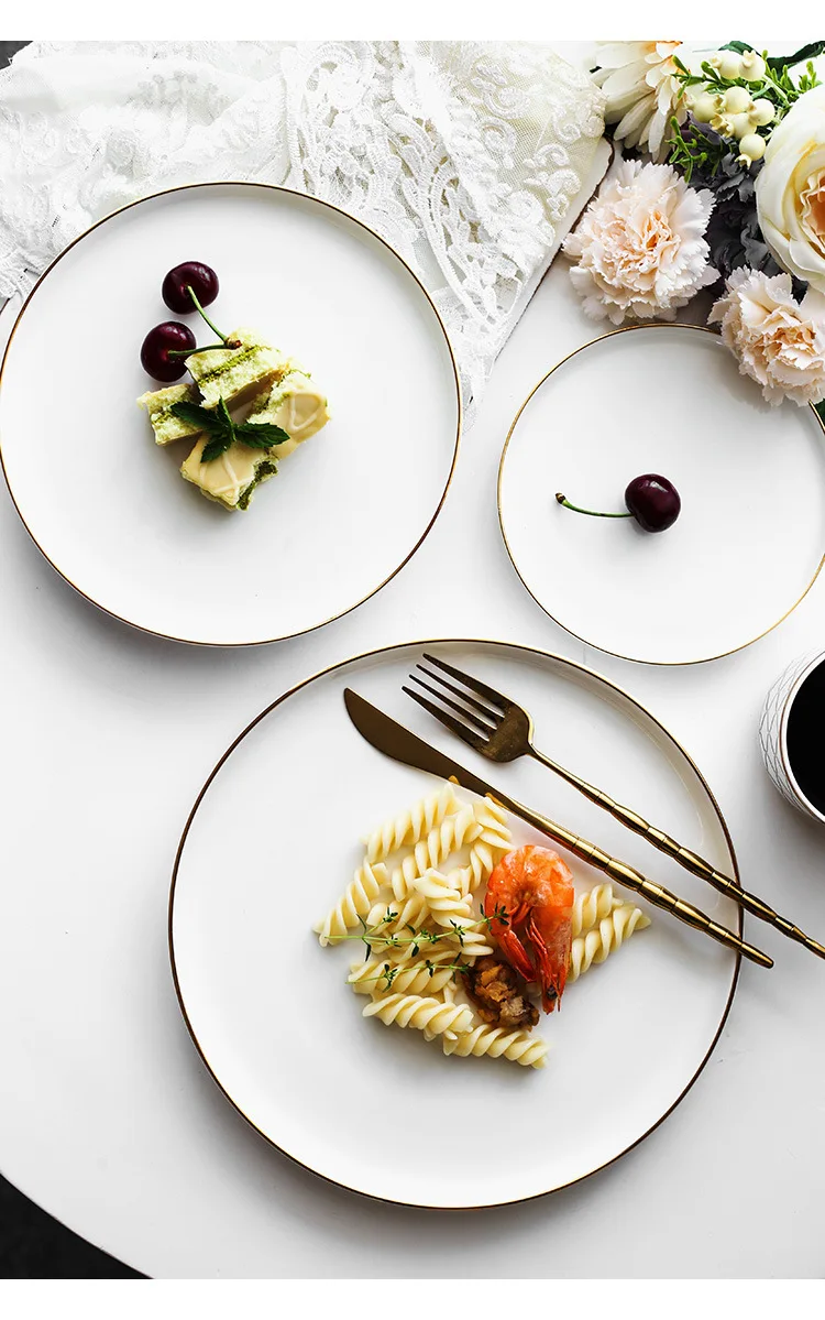 Brief Noridc круглая керамическая тарелка твердая Золотая кромка фарфоровая глазурь обеденная тарелка Западный стейк торт десерт лоток тарелки для закуски тарелка