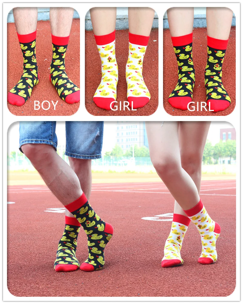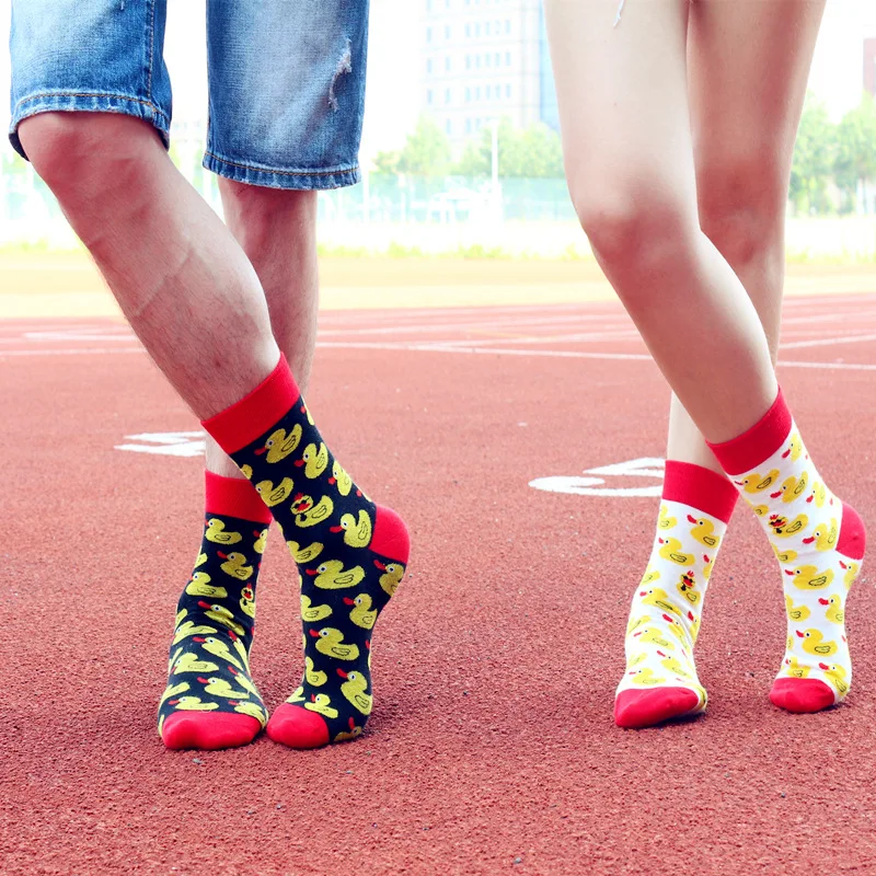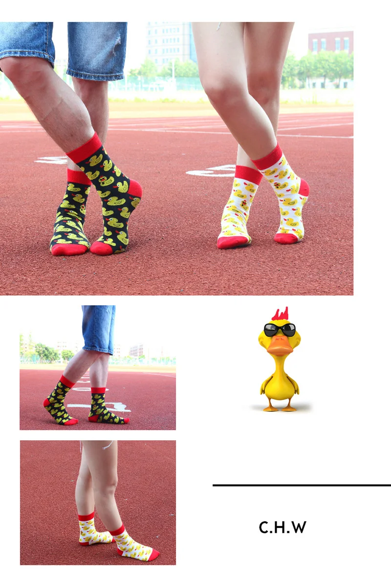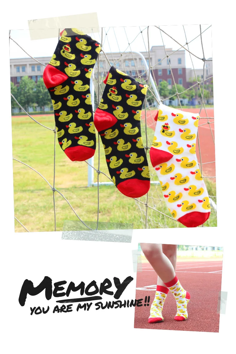 Носки мужские хлопковые в стиле Харадзюку, милые повседневные Смешные с мультяшным принтом желтой утки, в уличном стиле, в стиле хип-хоп, 1 пара