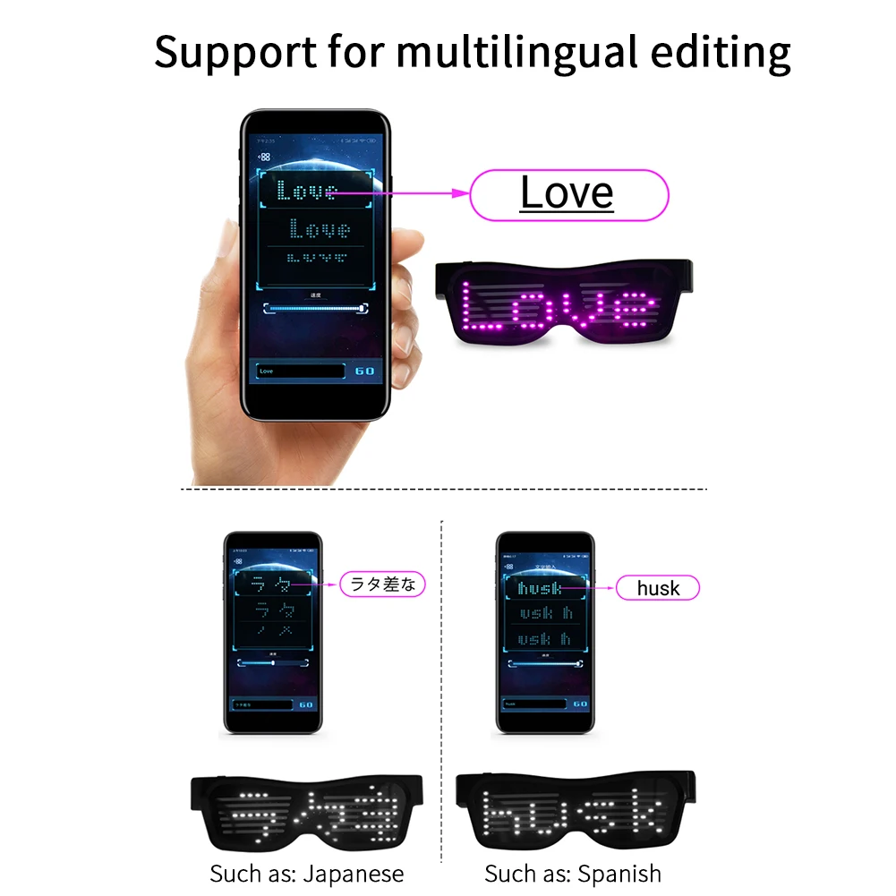 Волшебные светящиеся очки, Bluetooth, управление через приложение, очки для вечерние со светодиодной подсветкой, USB зарядка, сделай сам, управление через приложение, многоязычная быстрая вспышка