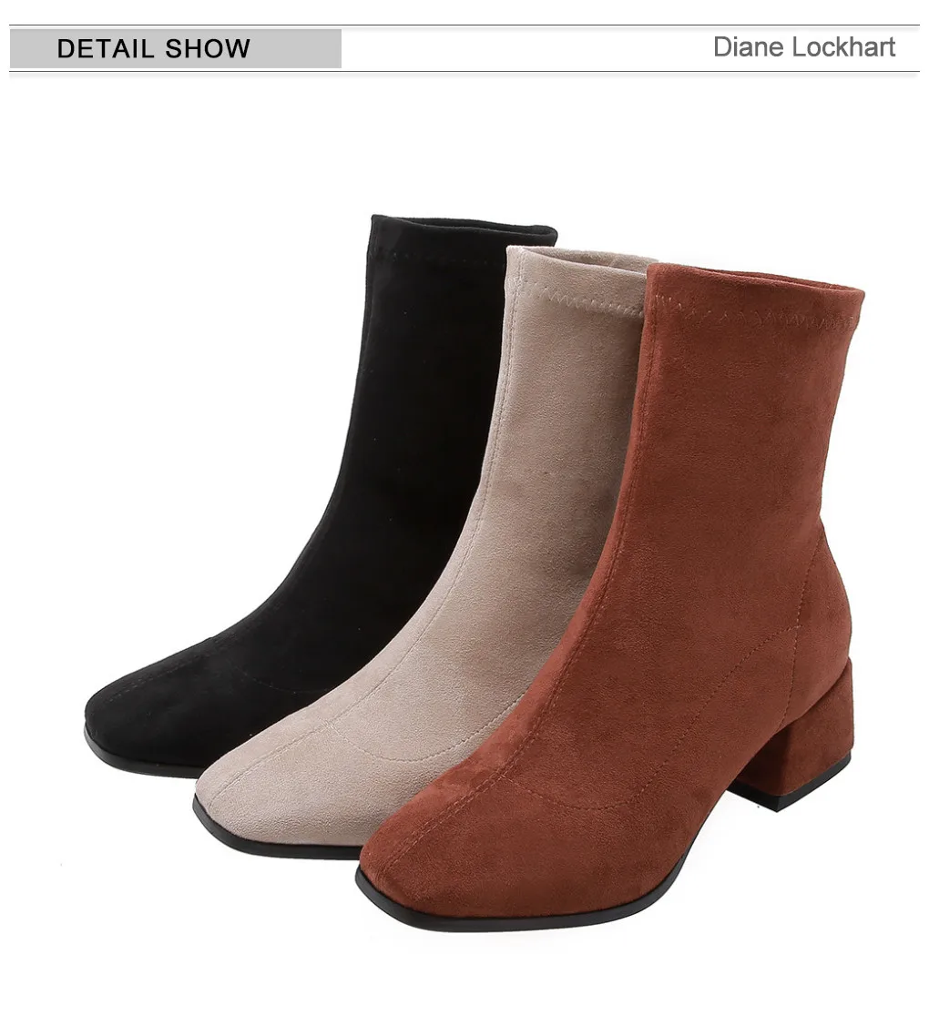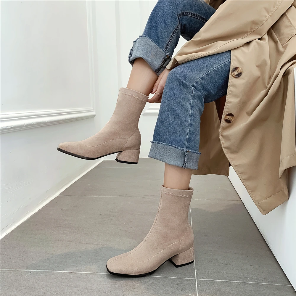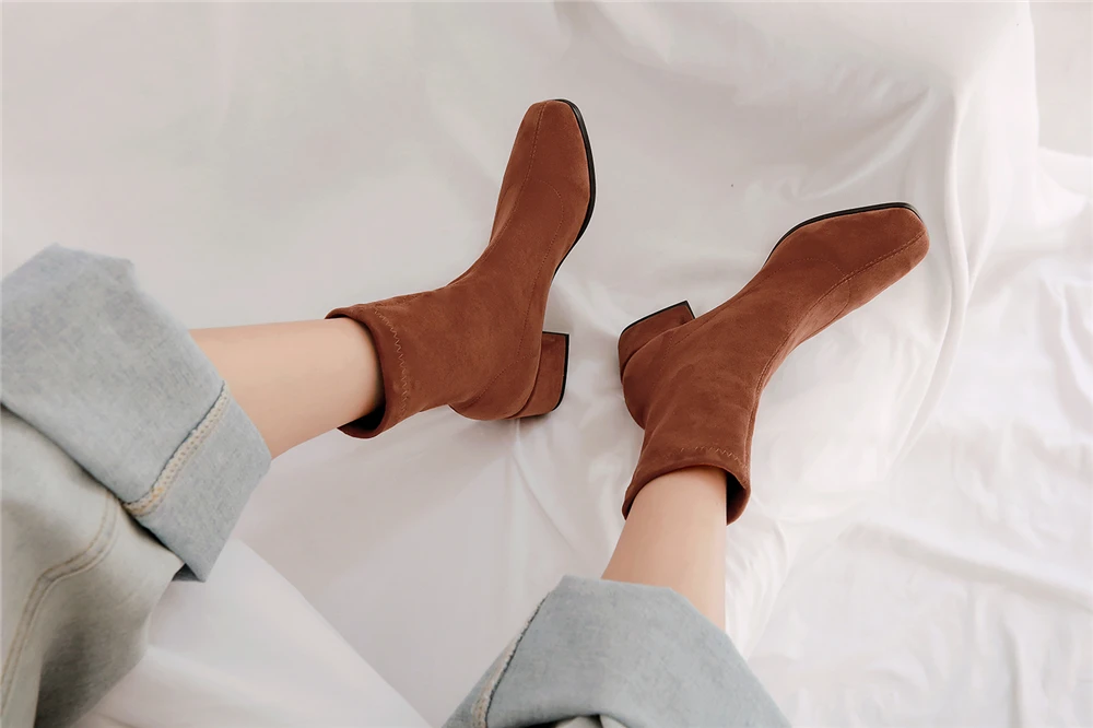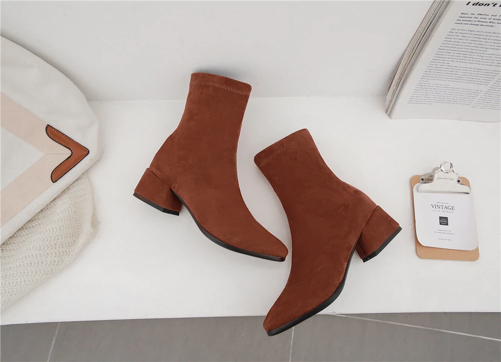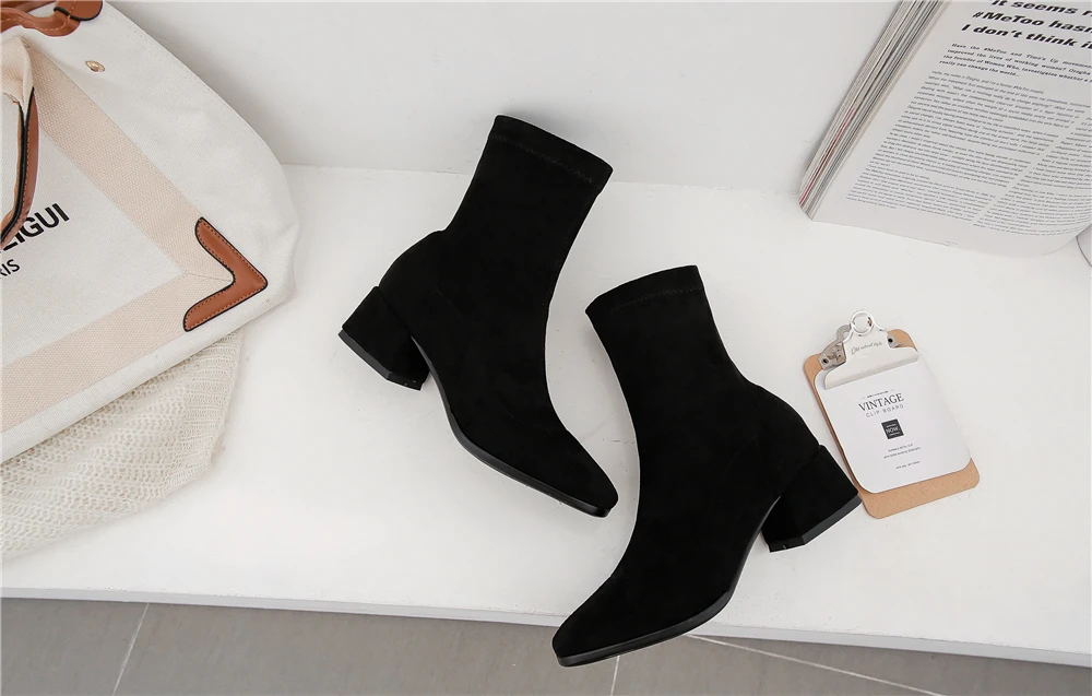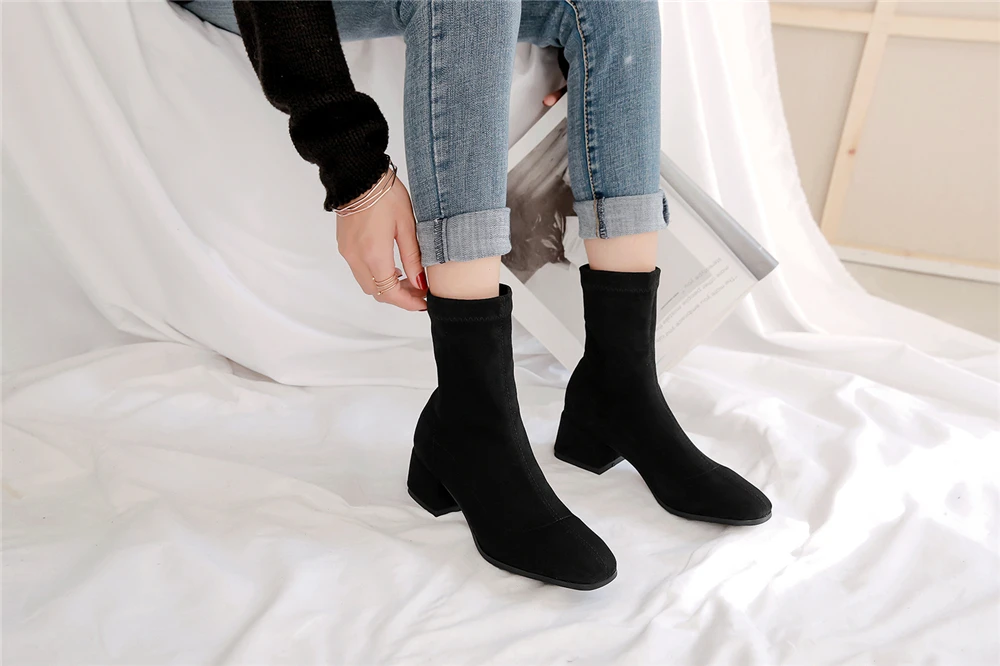 Женские ботильоны на высоком каблуке, зимние эластичные ботинки-носки, элегантная обувь на квадратном высоком каблуке, женская обувь, размеры 32- 43