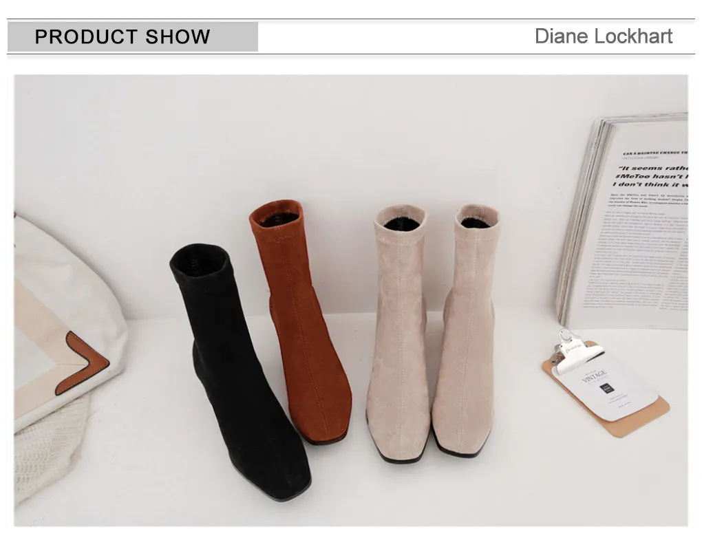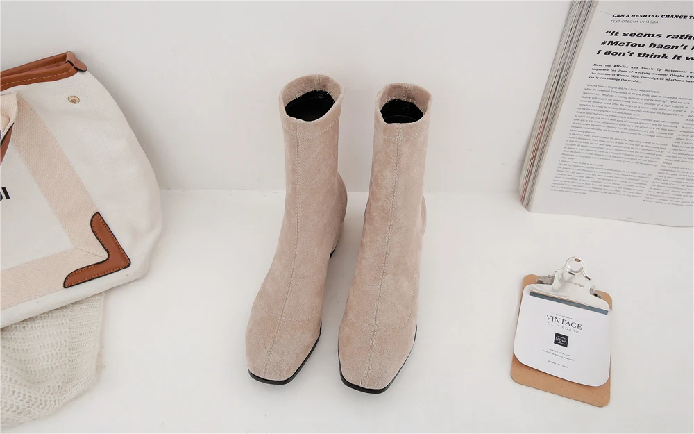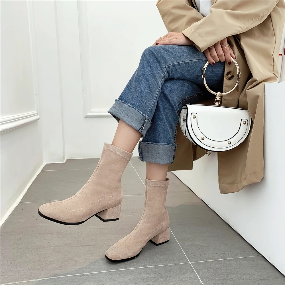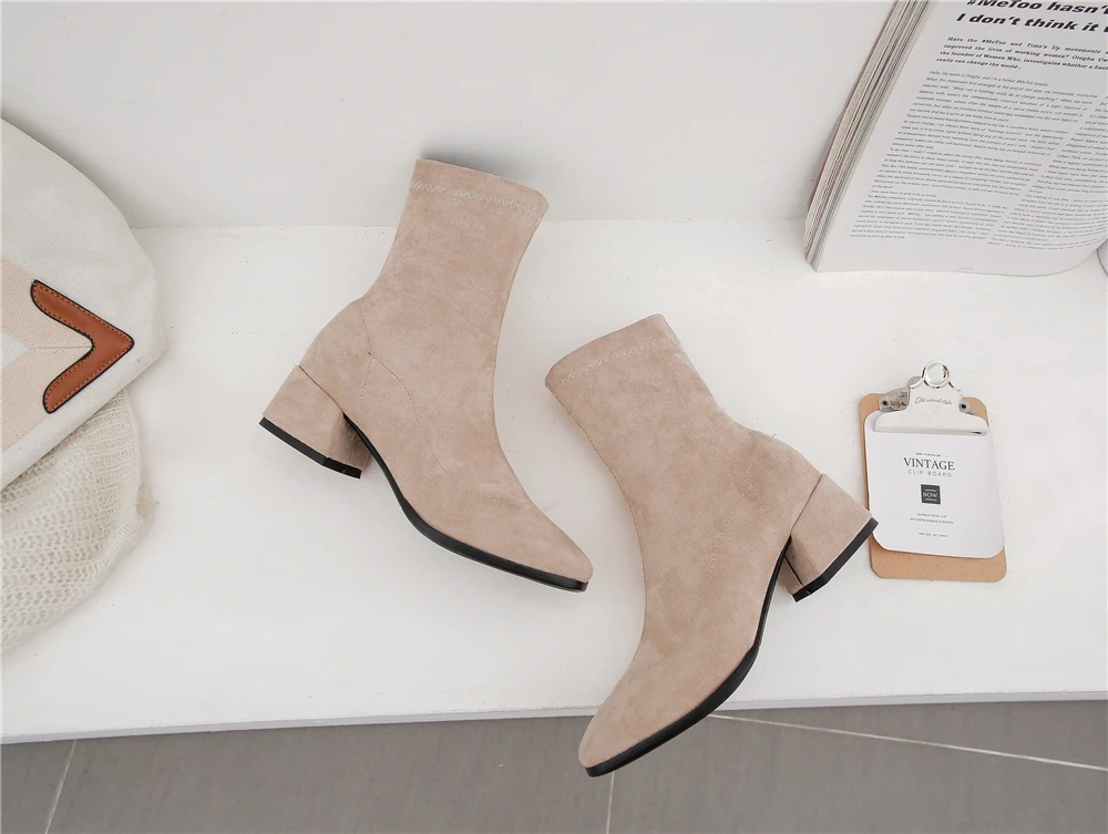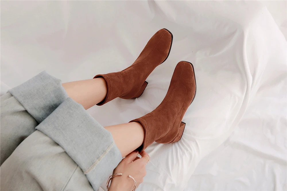 Женские ботильоны на высоком каблуке, зимние эластичные ботинки-носки, элегантная обувь на квадратном высоком каблуке, женская обувь, размеры 32- 43