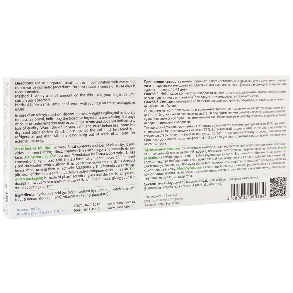 Teana Моментальный лифтинг, сыворотка для быстрой подтяжки кожи лица, уменьшает морщины, увлажняет, улучшает внешний вид, 10x2ml