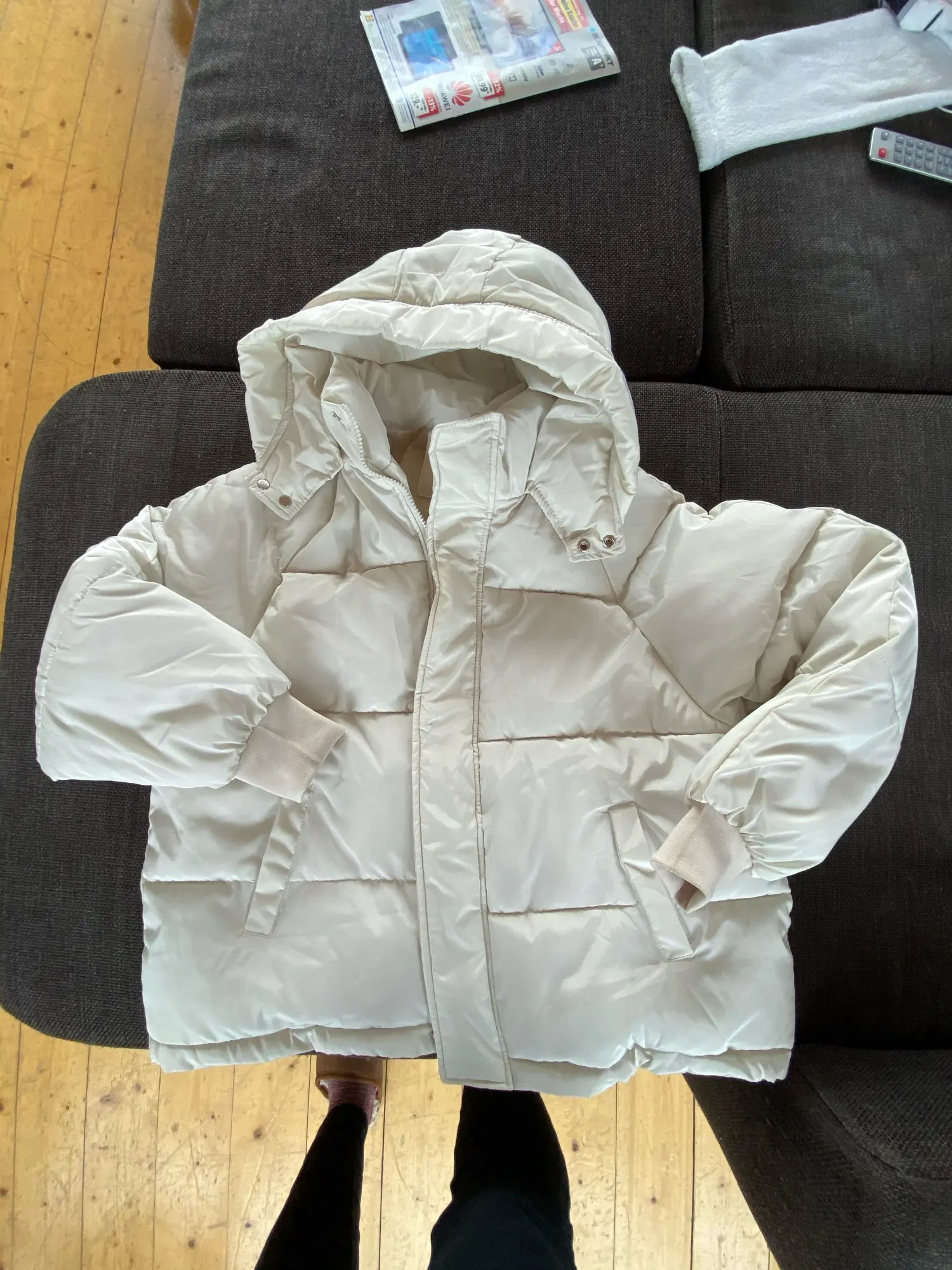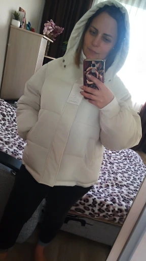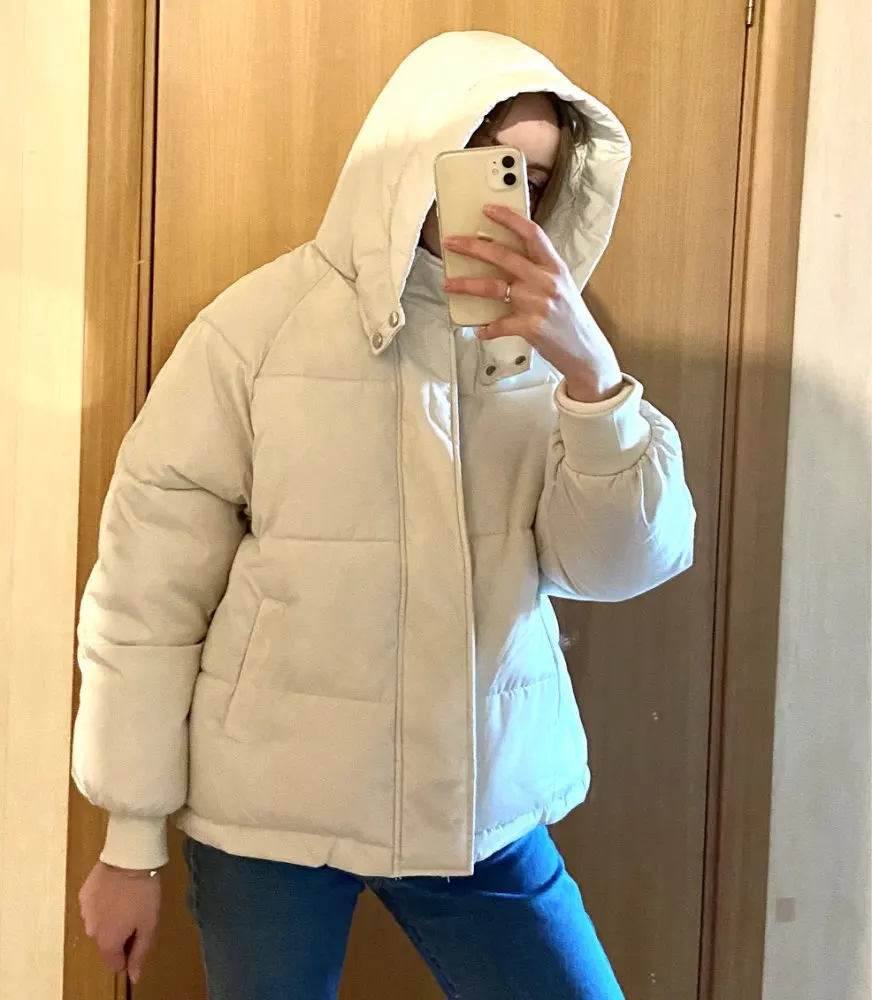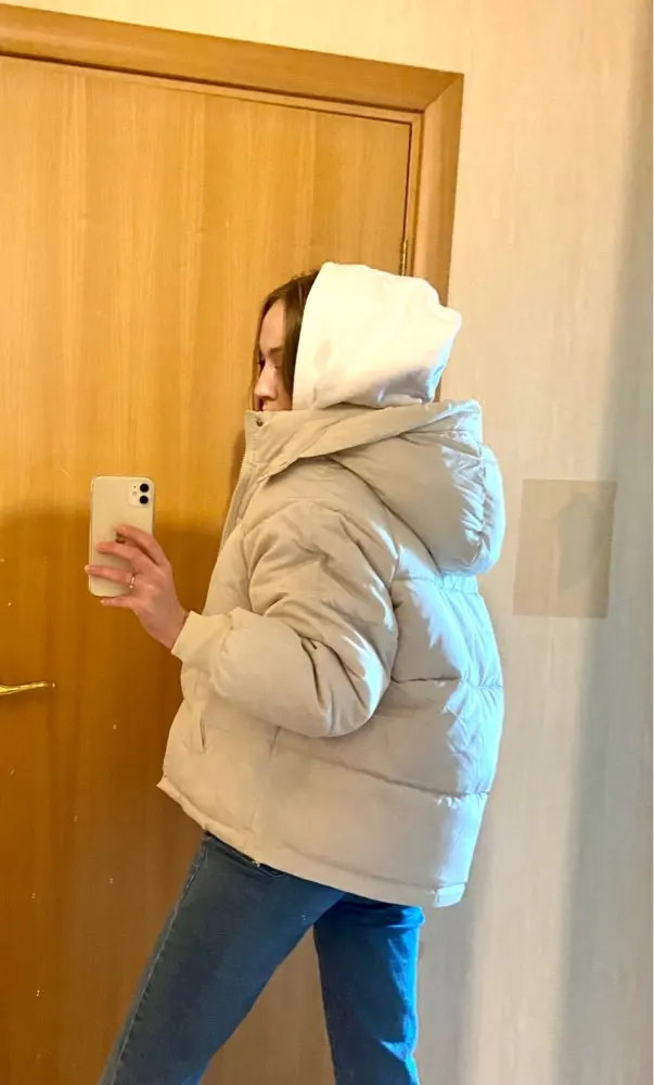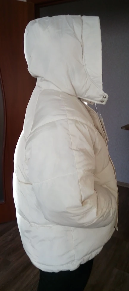 Очень быстро куртка дошла до НН. Около 10 дней ждала, получила в пункте выдачи 5post (магазин Пятёрочка). На свой S взяла М. Мои параметры: рост 173, ог 87, от 65, об 89). Вроде бы подошла, но хотелось бы чуть более длинные рукава. Когда руки поднимаешь, рукава задираются очень высоко. Куртка укорочённая, те кто хотят чтобы прикрывало пятую точку надо либо быть маленького роста, либо брать самый большой размер. Цвет не белоснежный, на дневном свете отдаёт в серый (4 фото приложила), а когда на искусственном теплом свете немного в серо-зелёный отдаёт. Куртка на осень/весну, до -10 подойдёт если одевать тёплые вещи под неё. Заказала с учётом того, что она будет свободная чтобы носить со свитерами. Так и вышло. Внизу есть резинки чтобы затянуть низ куртки,ограничители слабые на резинке поэтому надо завязывать узел.На последнем фото резинки затянуты, куртка смотрится как «зефирка». Капюшон глубокий, смотрится неплохо.Нет петельки чтобы вешать на крючок, придётся шить вручную.В целом совету