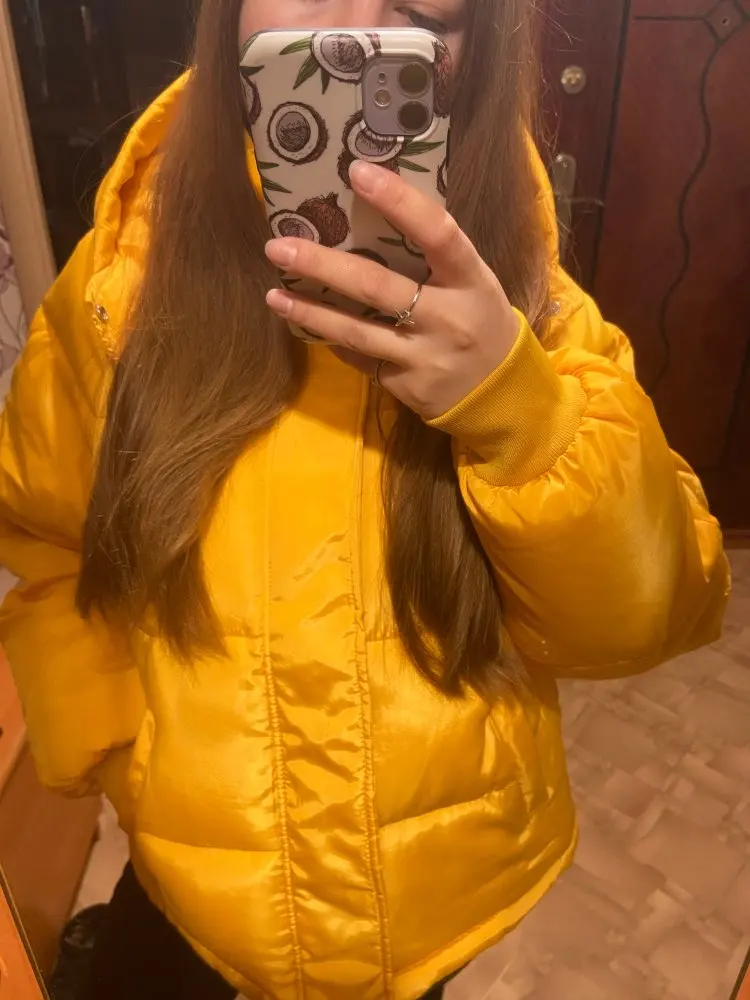 Куртка соответствует описанию, до Череповца пришла за 9 дней. Наполнитель не синтепон (как выше пишут), а холофайбер. Толстенькая, сшита аккуратно, без косяков. Цвет скорее жёлтый, чем горчичный. За такую цену я довольна.