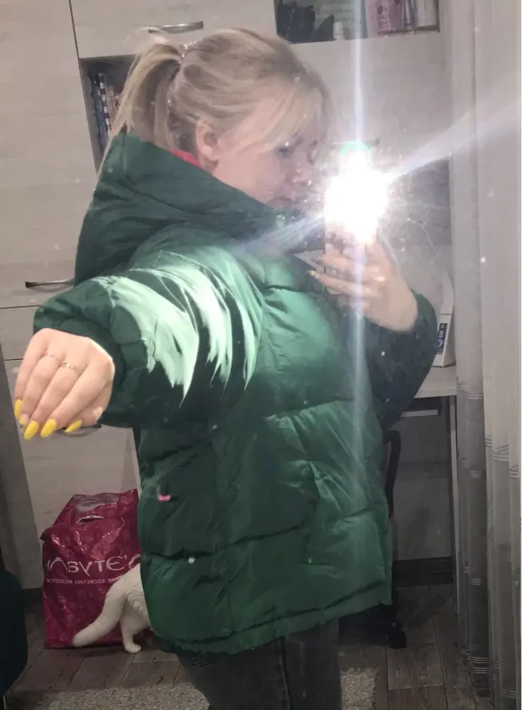 Всё просто супер!!! Доставка супербыстрая, за неделю!!! Как и хотела, xl брала на свой 48, но боялась будет маловата, но реально в неё уже включен оверсайз! Она прям классная и очень тёплая, думаю буду носить её и в зиму.