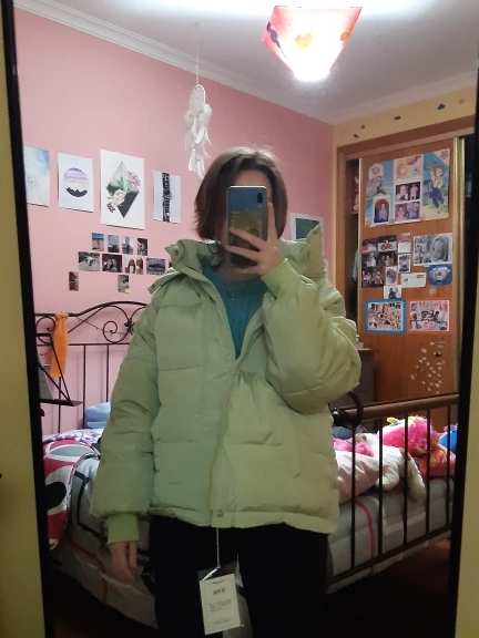 девочки, я просто в восторге! первый раз заказывала что-то настолько серьезное по типу куртки и была приятно удивлена! куртка досталась за ~1400, т.к. заказывала в пункт выдачи, а не на почту. посылка пришла за 9 дней!!! это самая быстрая доставка, что у меня была! куртка выглядит отлично, не воняет, нитки не торчат, не отличишь от таких же из магаза за овер 3к рублей. могу ошибаться, но это вроде пуховик, на улицу пока не надевала, но думаю, что до -10 пойдет на ура. на рост 163 заказала М - попу чуть прикрывает, по рукавам норм, оч широкая(оверсайз походу). короче, не сомневайтесь - берите! thank you so much <3