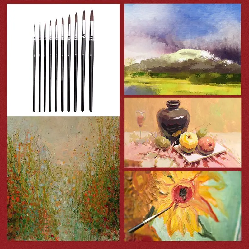 Кисть из беличьей шерсти, стержень в виде свечи, кисть для акварели, круглая головка, гуашь, масляная живопись, акриловая ручка, чехол для хранения воды