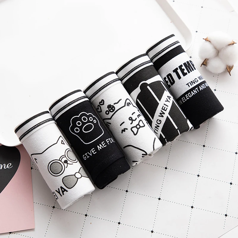 Простое милое черно-белое мультяшное хлопковое женское нижнее белье...