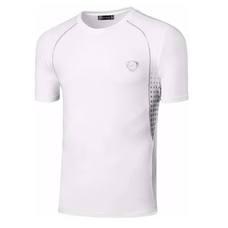 Jeansian Для Мужчин's Спортивная футболка футболки для бега тренажерный зал Фитнес тренировки Футбол короткий рукав ткань отводящая влагу LSL225 White2