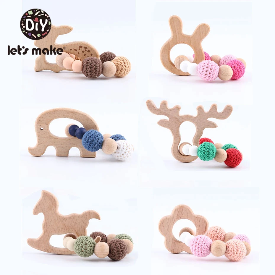 Деревянный Прорезыватель для зубов Let'S Make, детский браслет для прорезывания зубов, 1 шт., Буковый Прорезыватель для зубов, бусины для вязания крючком, сделай сам, ювелирные изделия, Игрушка аксессуары для прорезывания зубов