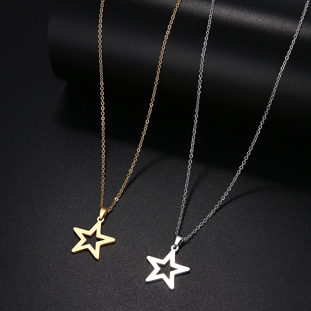 Женское Ожерелье из нержавеющей стали, классическое ожерелье-чокер с полой звездой, ювелирные изделия для помолвки