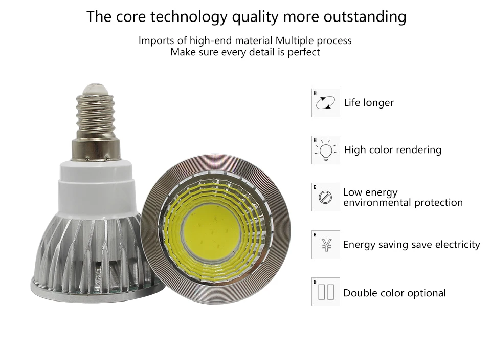 Параметры: * Ультра-Яркий Светодиодный точечный светильник. * Безопасный и эффективный. Лучшее энергосбережение, низкое тепло и низкое энергопотребление. * Длительный срок службы, высокая светоотдача. * Отличное снижение выбросов углерода, экологически чистый. * Твердое состояние, ударопрочный. Прочный авиационный алюминиевый сплав. * Без VU и ИК-излучения. Нет свинца, ртути и других элементов загрязнения. * Подходит для домашнего использования, офиса, магазина, ресторана, выставки, залов, музейного отеля. Параметры: Основание Тип: GU10 MR16 E27 E14 GU5.3 Напряжение: 85-265 в (MR16-12 В постоянного тока) Мощность чипа: 9 Вт 12 Вт 15 Вт Чип COB Диммируемая: диммируемая/не диммируемая в наличии Цвет: теплый белый (2700K-3500K) Холодный белый (5500K-6500K) Угол луча: 60 градусов (очень широкий) Срок службы: 50000 часов. Сертификация: CE & ROHS & CCC -Размер лампы (высота * диаметр): 9 Вт-63 мм * 48 мм; 12 Вт-73 мм * 48 мм; 15 Вт-87 мм * 48 мм. > Применение: В помещении, коридорах, офисах, ресторанах, кухнях и других помещениях > Место происхождения: Гуандун, Китай (материк) Примечание: * (GU10, GU5.3,E14, E27) Светодиодный точечный светильник с регулируемой яркостью должен переключаться на диммер для достижения функции затемнения. * Светодиодный прожектор MR16 12V должен регулировать напряжение для достижения функции затемнения. Нет-Диммер: E27/E14/GU10/GU5.3 is AC85-265V MR16 is DC12V Диммер: E27/E14/GU10/GU5.3 является AC110 или AC220V MR16 является DC12V (Если вам нужно 110 В, пожалуйста, оставьте нам сообщение или мы отправим вам 220 В)