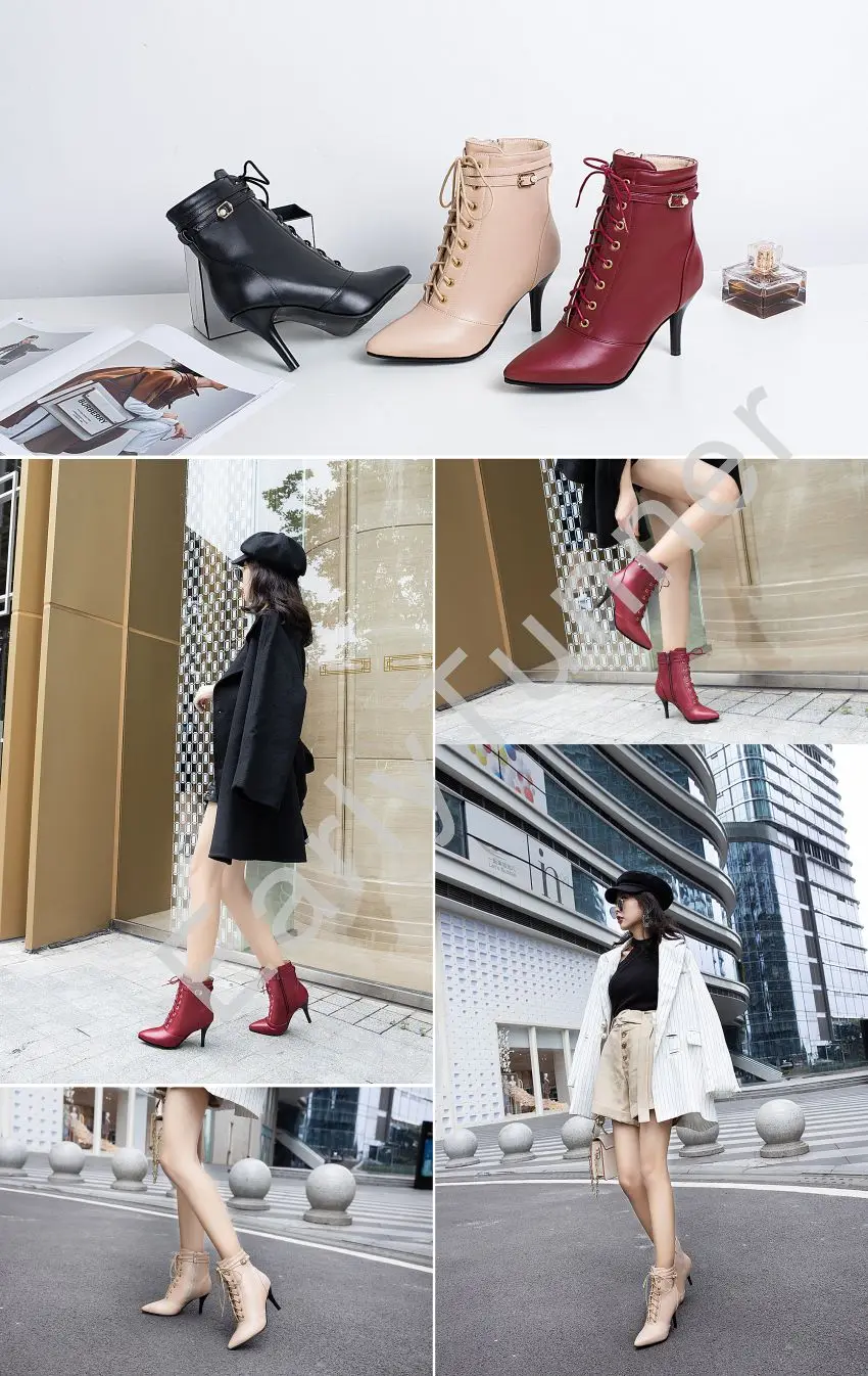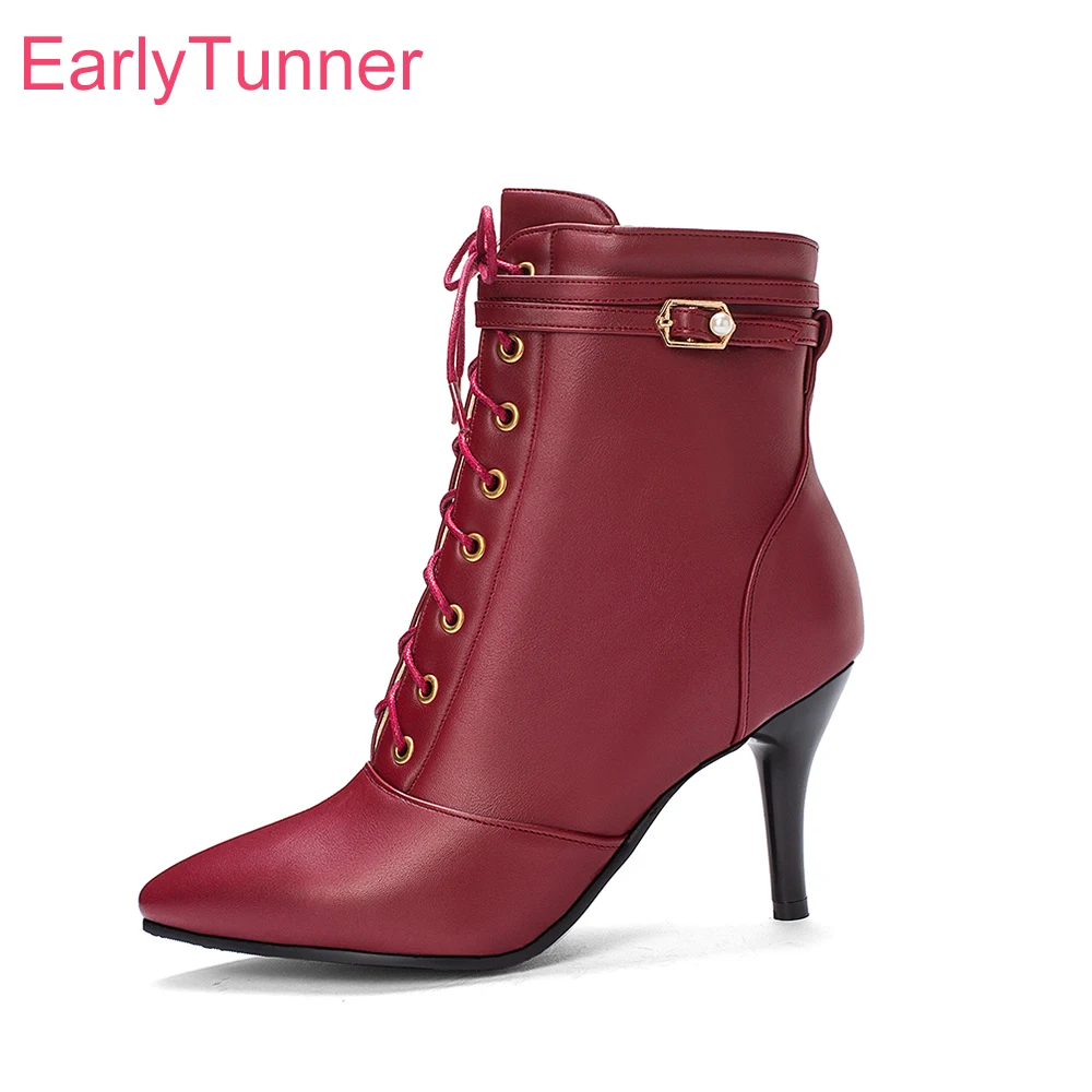 Зимние брендовые новые сексуальные винно-красные черные женские ботильоны женская обувь EA106 большого размера 10 30 45 48