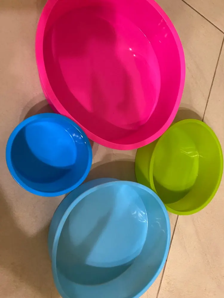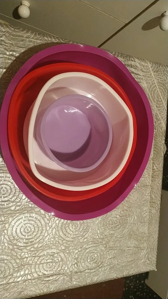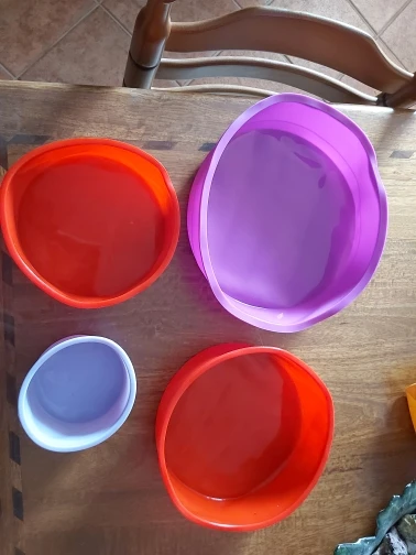 Очень быстрая доставка (менее 10 дней). 4 формы упакованы в пластиковый пакет. Они получили форму после распаковки и очистки. Они гибкие и износостойкие. Я просто немного разочарован, что у меня было 3 розовых формы на 4: Я бы хотел другие цвета, но это просто вопрос вкуса.
