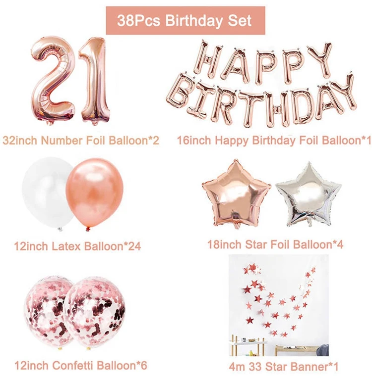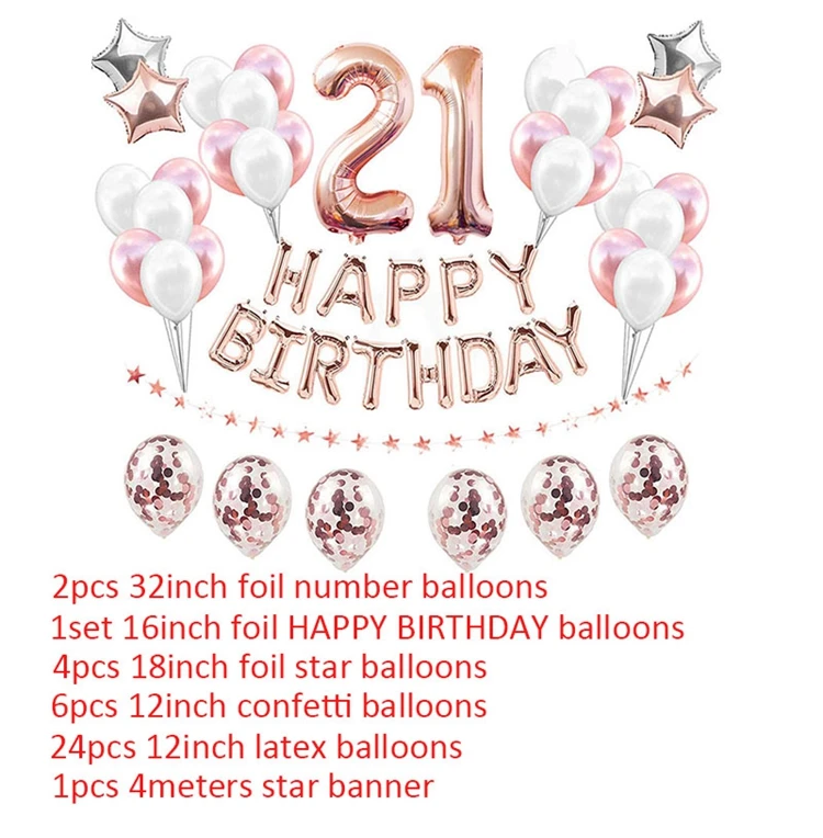 38 шт. розовое золото синий розовый воздушные шары из фольги в виде цифр 21 лет День рождения украшения 21st мужские и женские 12 12th для девочек и мальчиков