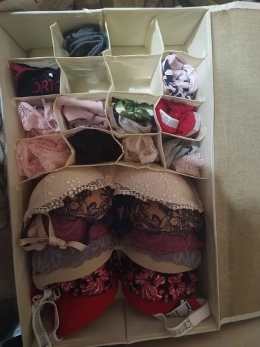 товар пришел в целости, кофр для хранения плотный, есть запах, компактный, покупала для хранения носков, цвет как на картинке! спасибо продавцу.