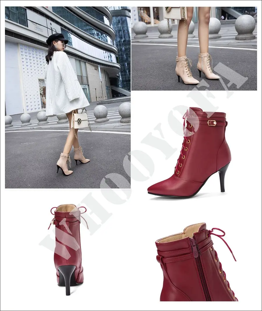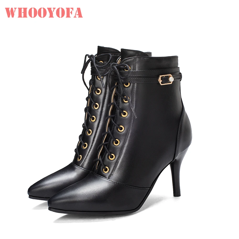 Женские ботильоны на высоком каблуке, бежевые или черные элегантные ботинки для верховой езды, большие размеры 30, 10, 43, 46, 48, WA206, зима