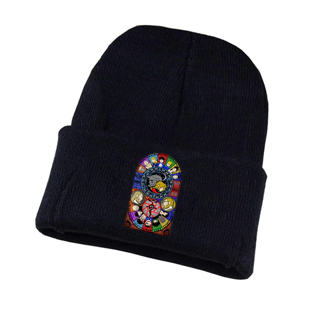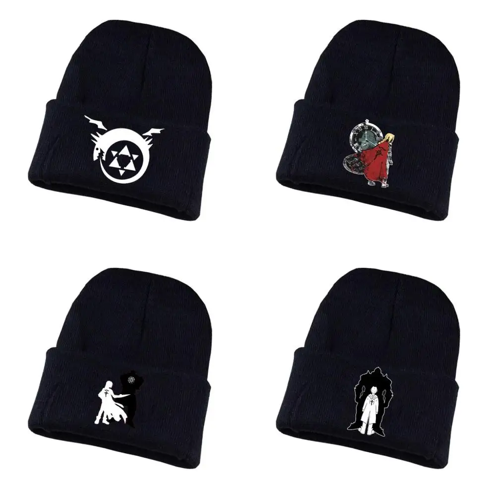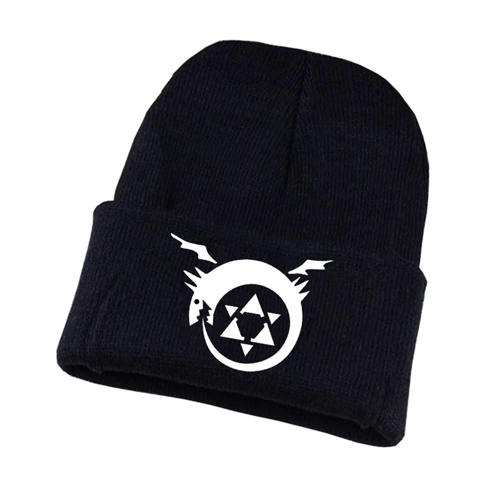 Зимняя теплая шапка Аниме Стальной алхимик вязаная шапка унисекс с принтом хлопковая шапка Подростковая зимняя вязаная шапка