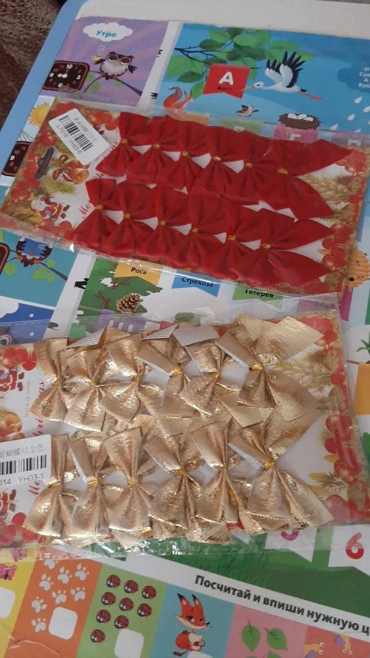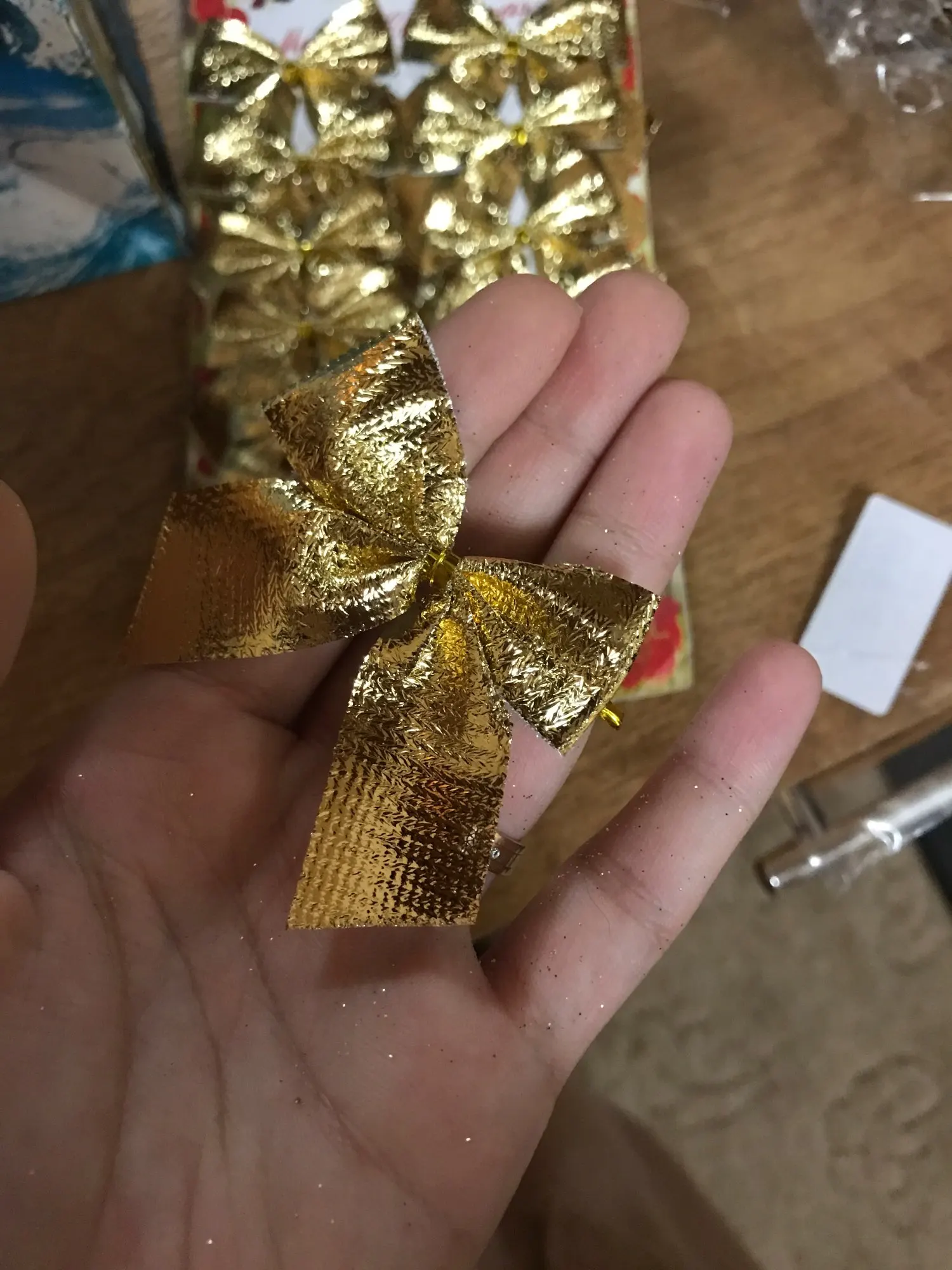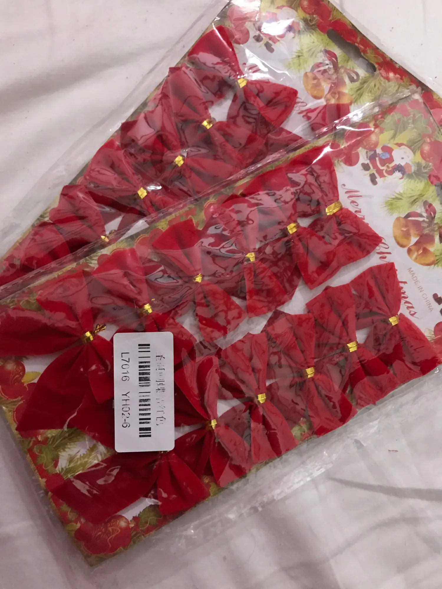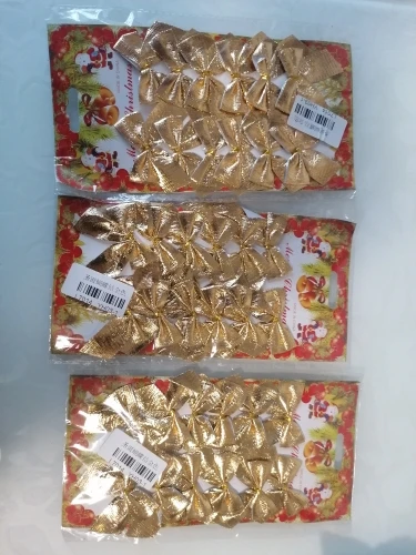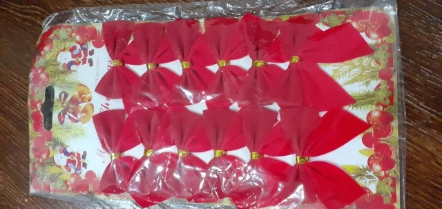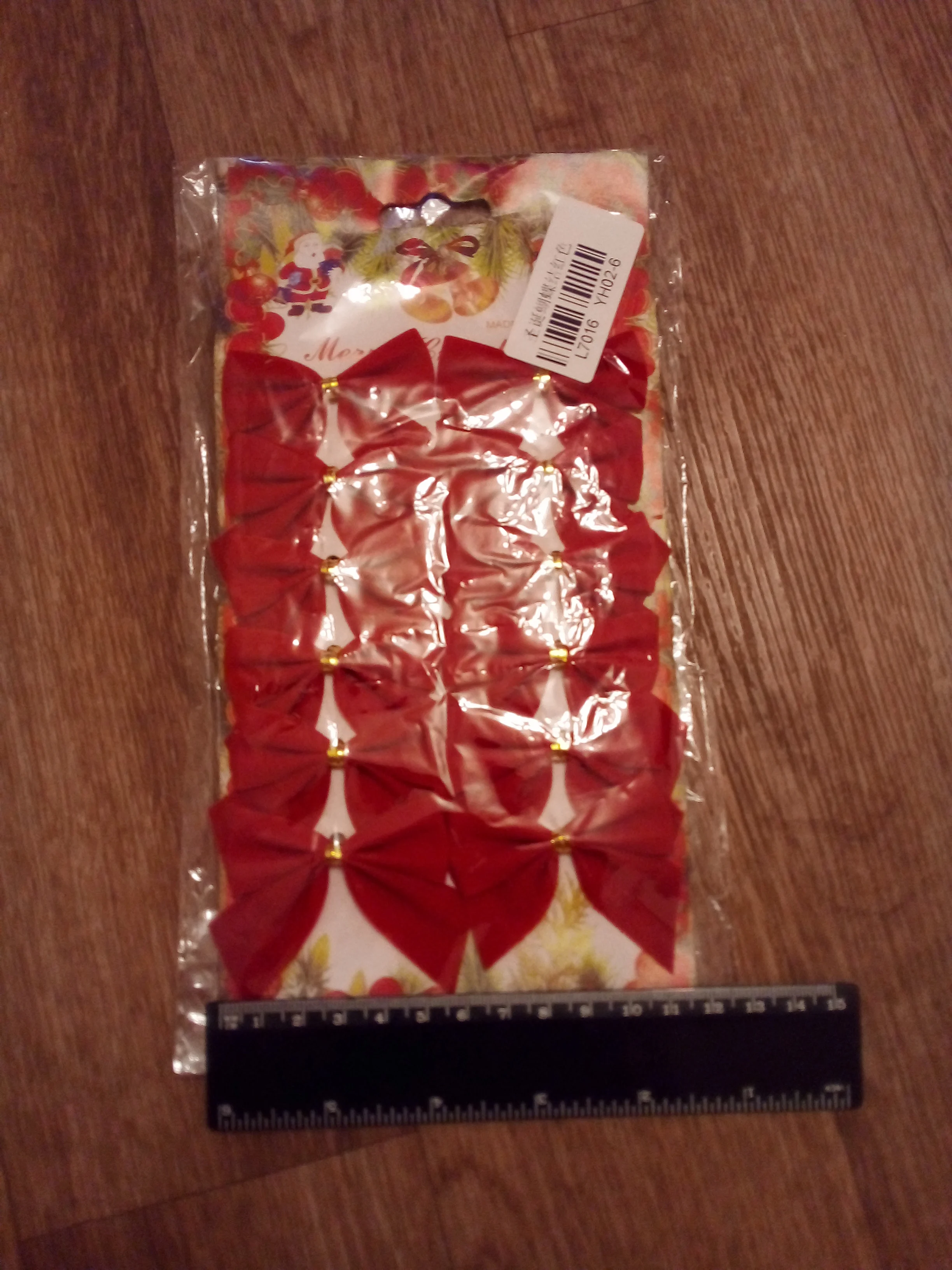 Заказала 26.11. к новому году. Но посылка шла очень долго... Пришла только 19. 01, почти 2 месяца. Соответственно банты сейчас уже не нужны, только на следующий год. На картинке размер преувеличен, на самом деле они меньше. Такие банты оказалось есть в фикс прайс за 51 рубль. Поэтому банты, как банты, ничего сверхъестественного.