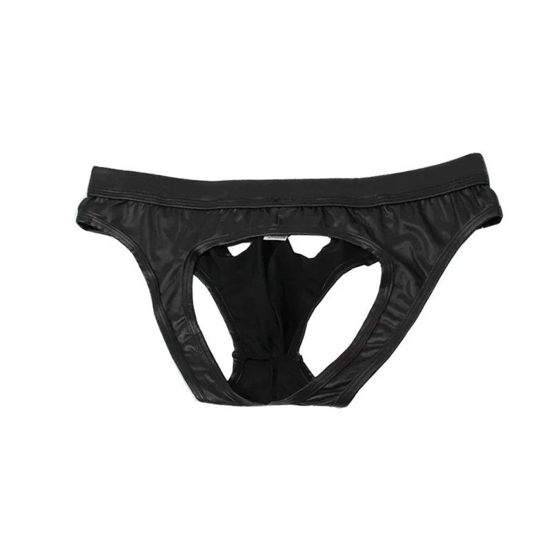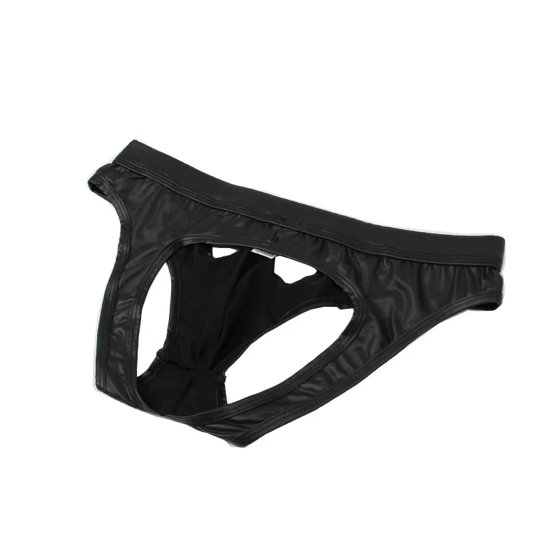 Мужские трусы из искусственной кожи с открытой спиной и металлическими кольцами