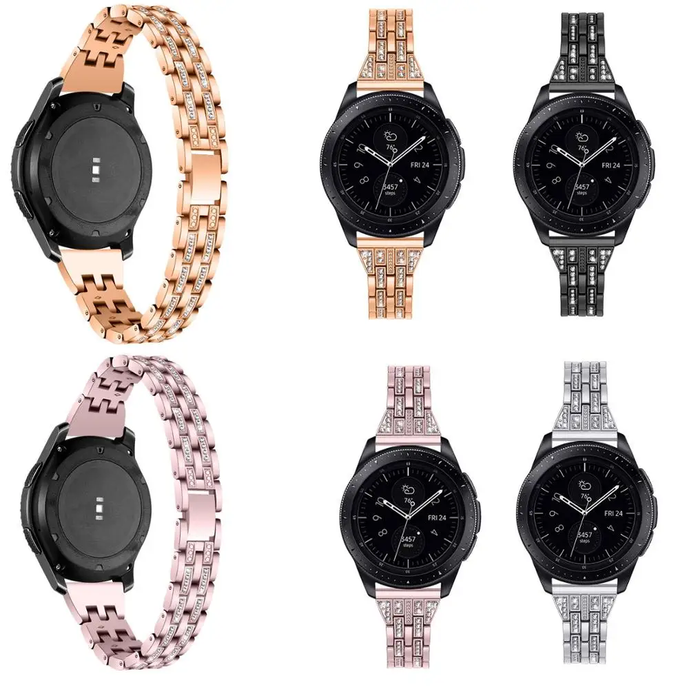 Для samsung Galaxy Watch 42 мм 46 мм ремешок с кристаллами из нержавеющей стали металлический ремешок браслет с быстроразъемные контакты