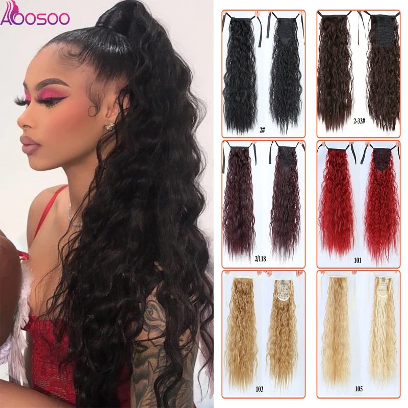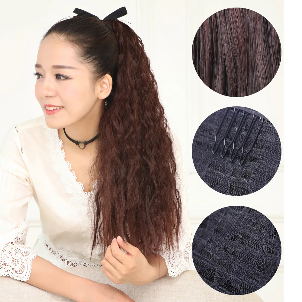 18 "22" Кудрявые прямые синтетические накладные волосы конский хвост на заколках натуральные накладные волосы термостойкие кусочки волос