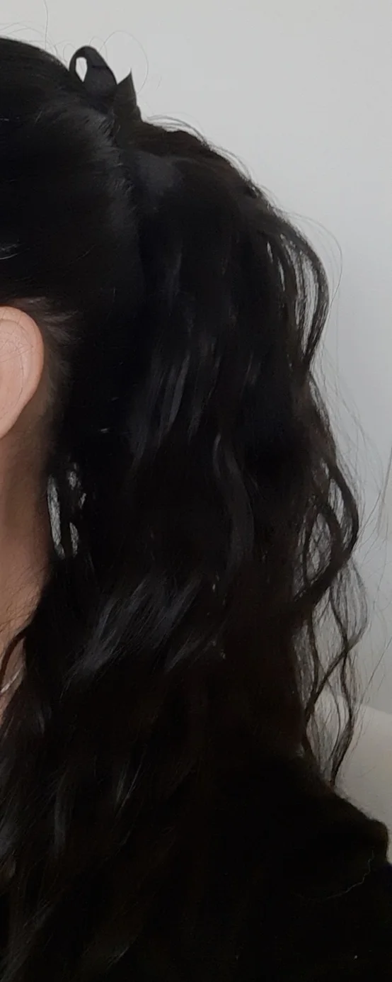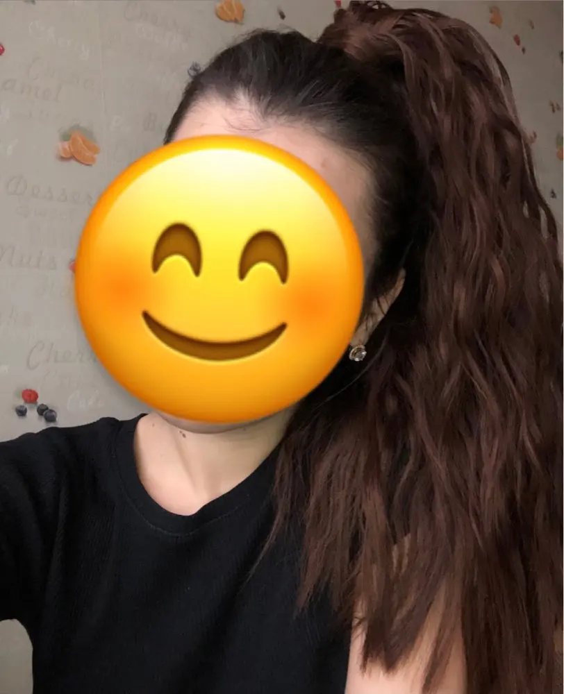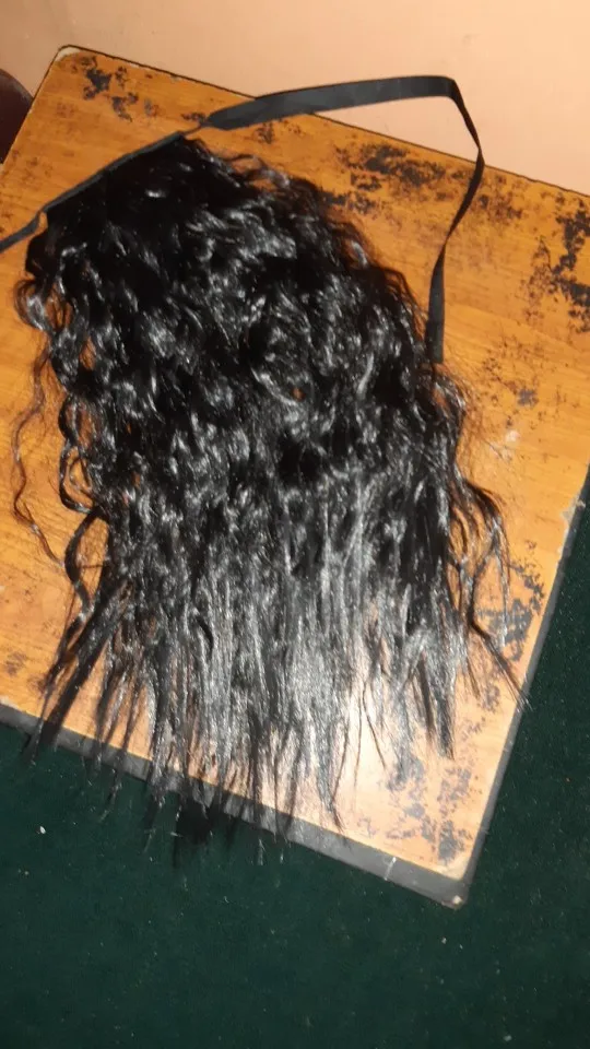 Волосы по цвету не совсем совпали, давольно темные и отдают красным оттенком. На фото видно как блестит и эффект «грязных волос». За 200р думаю сойдёт . Для фото самый раз, не думаю что пойду в нем на улицу )