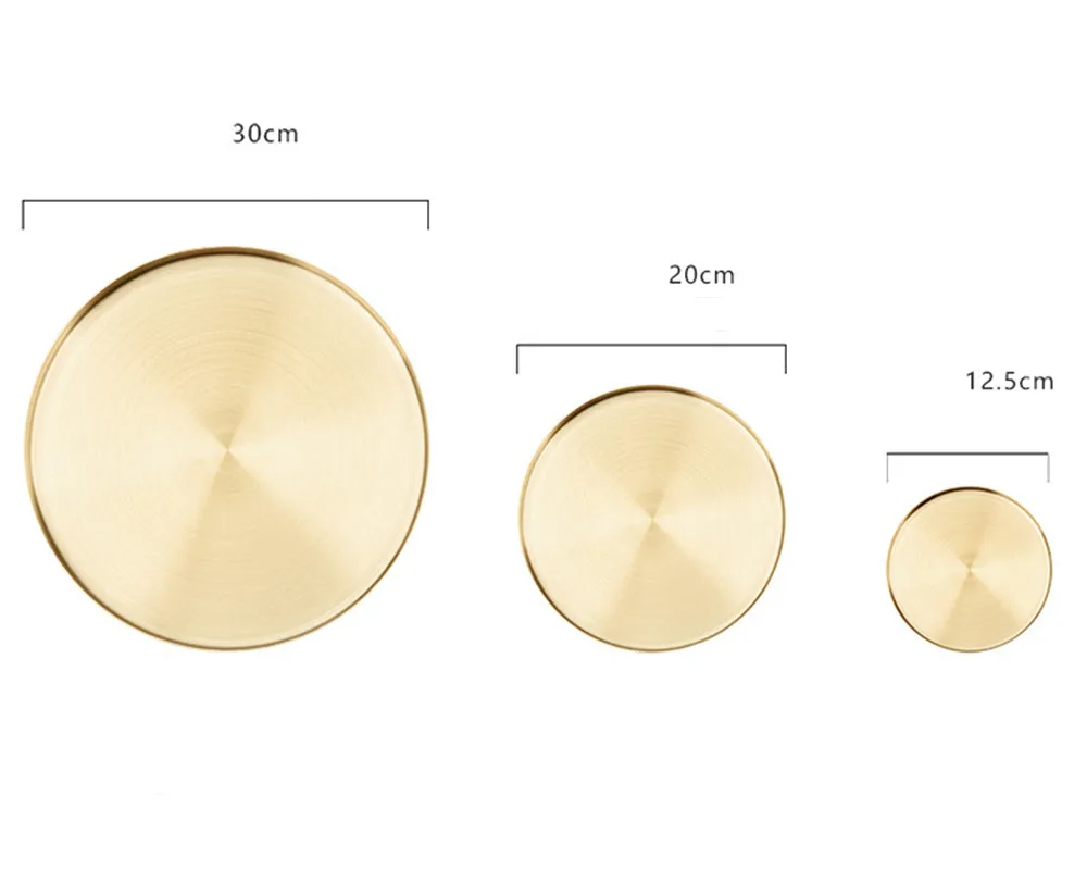 Особенности1. Простой офисный лоток для хранения2. Металлический материал высокого качества3. Используется для украшений, колец, конфет, мелочейХарактеристикиМатериал: металлФорма: круглаяЦвет: золотоДиаметр: 12,5 см, 20 см, 30 см Посылка входит1 * лоток для хранения Напоминания:1) из-за разницы в настройках компьютерных мониторов цвета могут немного отличаться от изображений.2) возможны отклонения на 1 - 2 см из-за измерений вручную