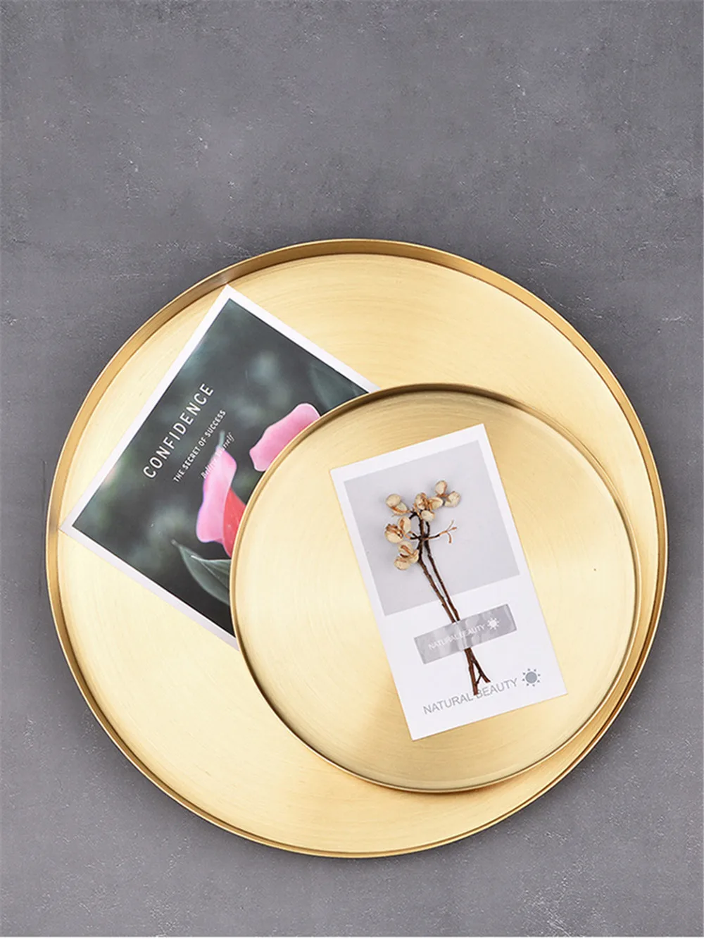 Роскошный Золотой лоток для хранения, шикарный золотой лоток для ювелирных изделий из нержавеющей стали, простой Настольный органайзер для послеобеденного чая и десертов