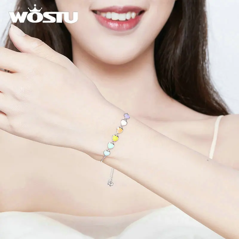 Женский браслет с радужным сердцем, из серебра 925 пробы