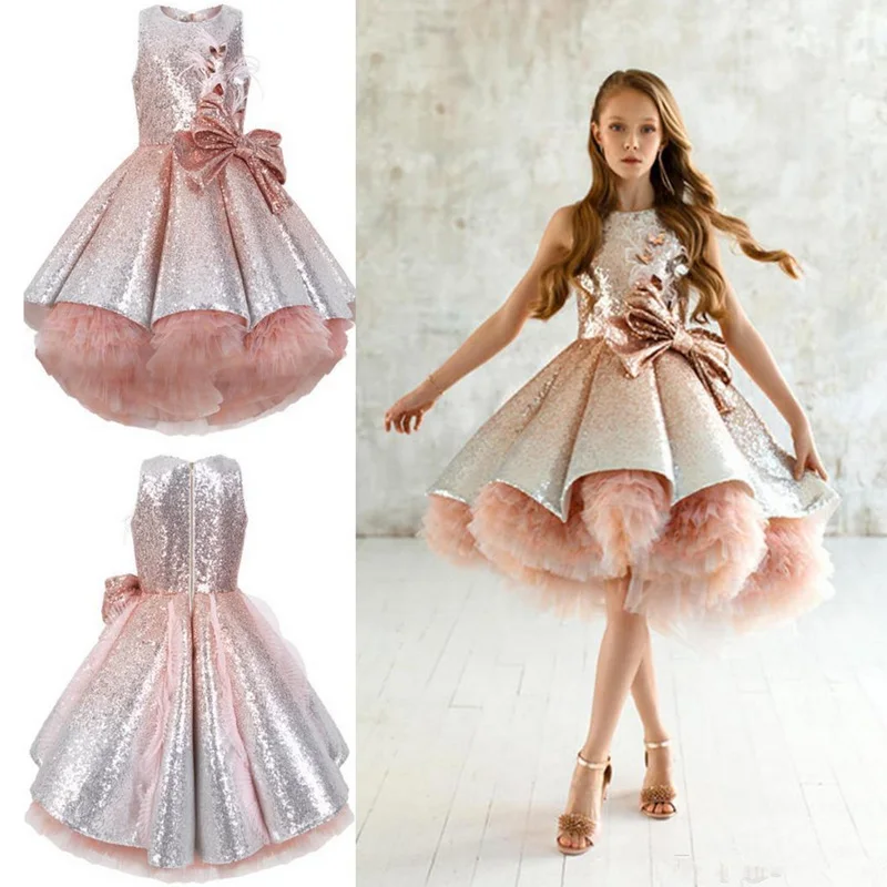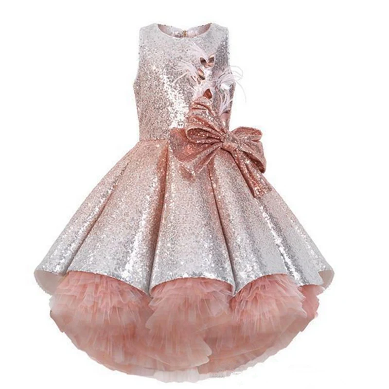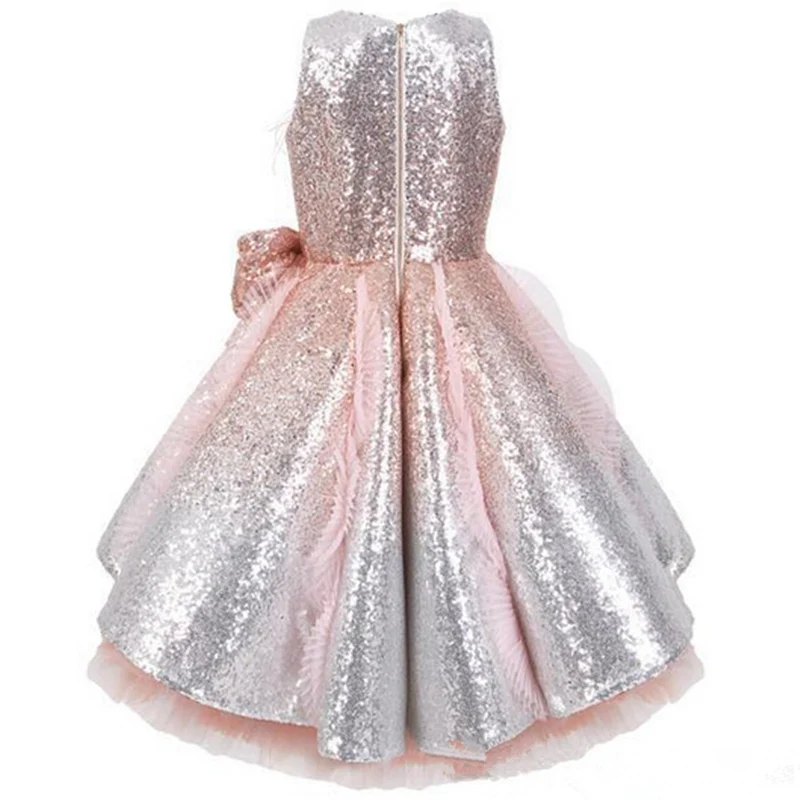 Серебряные блестящие платья для девочек с цветами, маленькая принце...