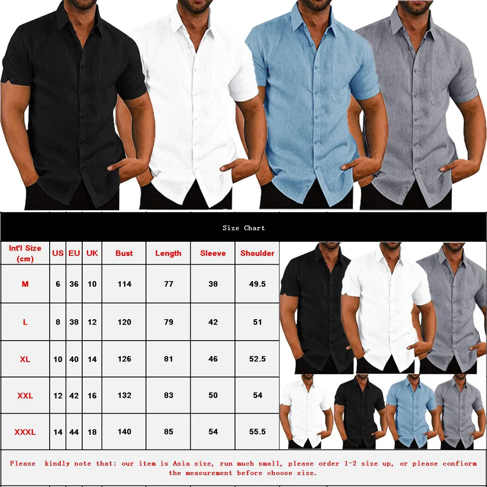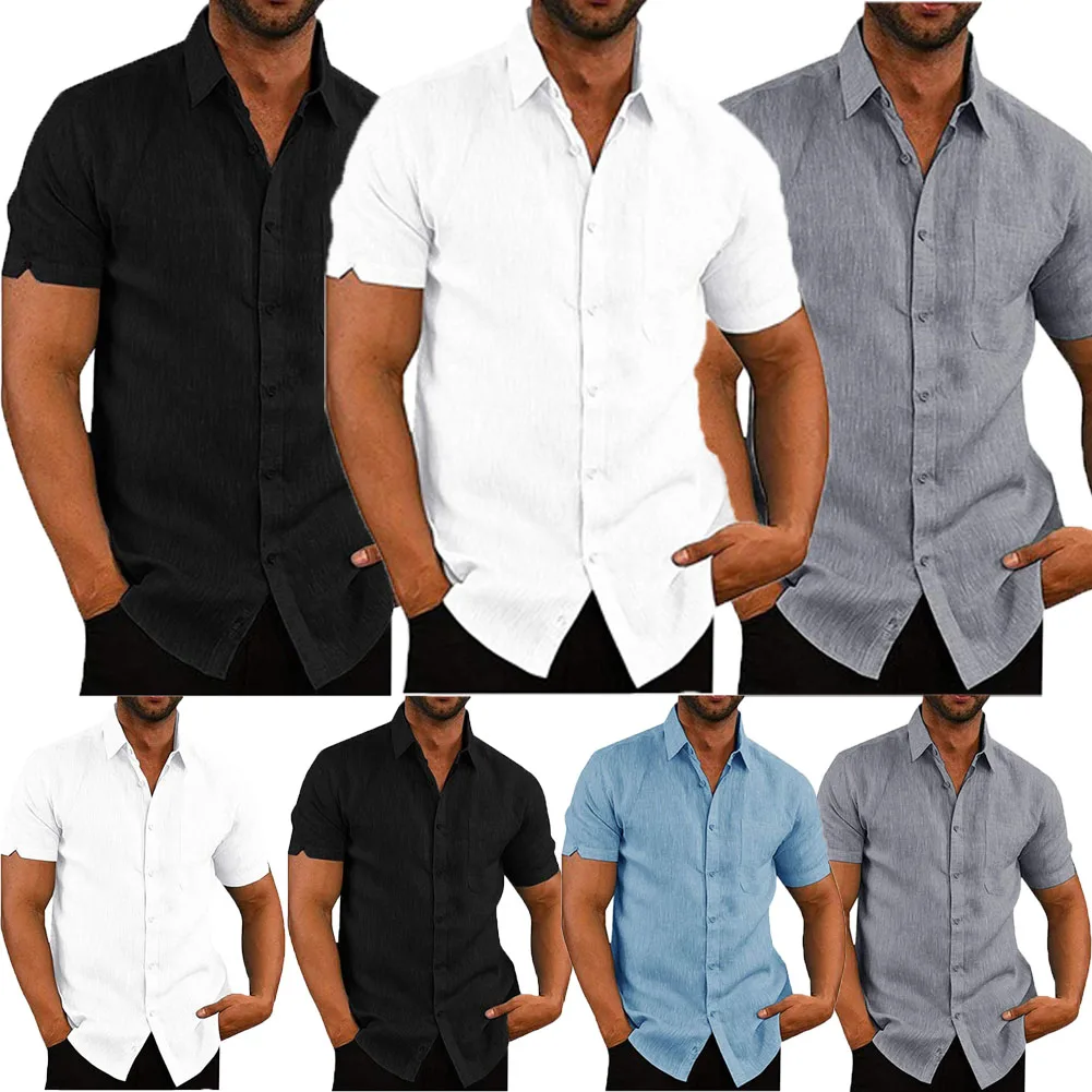 Мужская льняная блузка, с коротким рукавом, мешковатые, на пуговицах, летние, однотонные, удобные, из чистого хлопка и льна, повседневные, свободные, праздничные рубашки, футболки