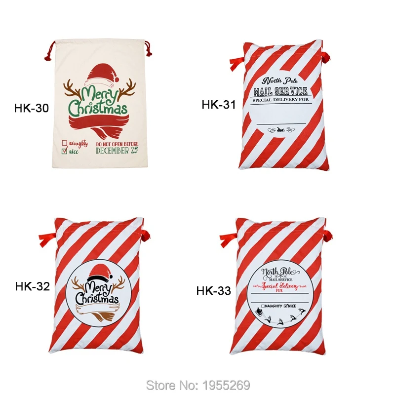 Санта мешки 30 шт./лот Рождественский подарок на шнурке Холщовая Сумка Оптовая продажа Детские игрушки большие мешки ручной работы свадебные вечерние украшения