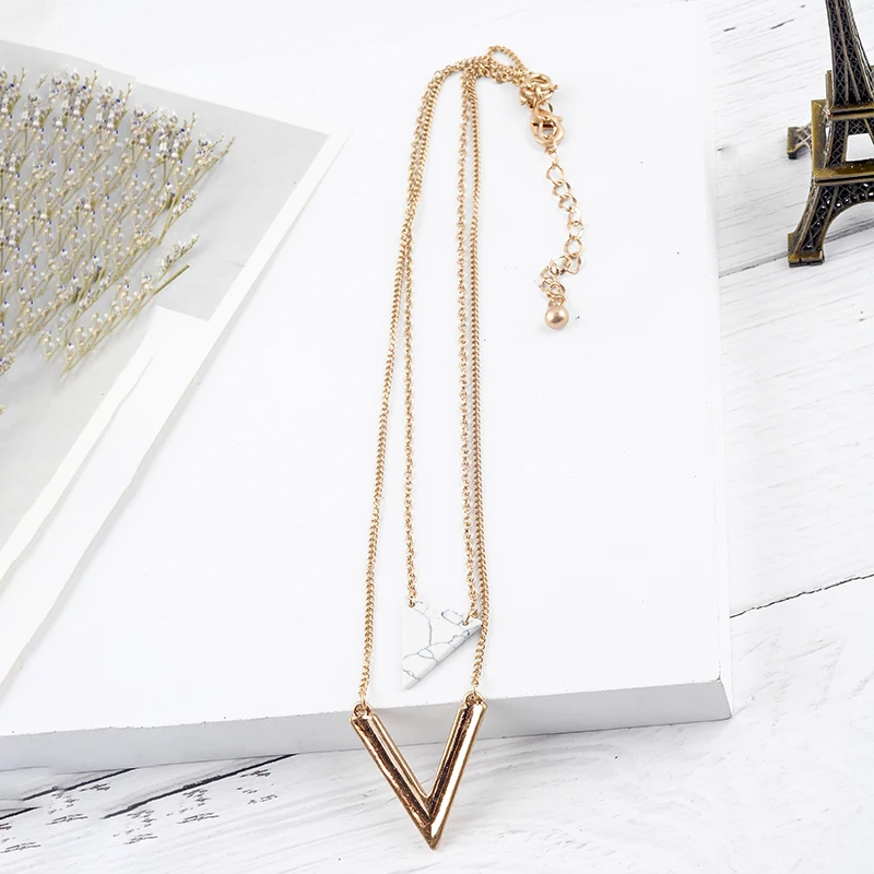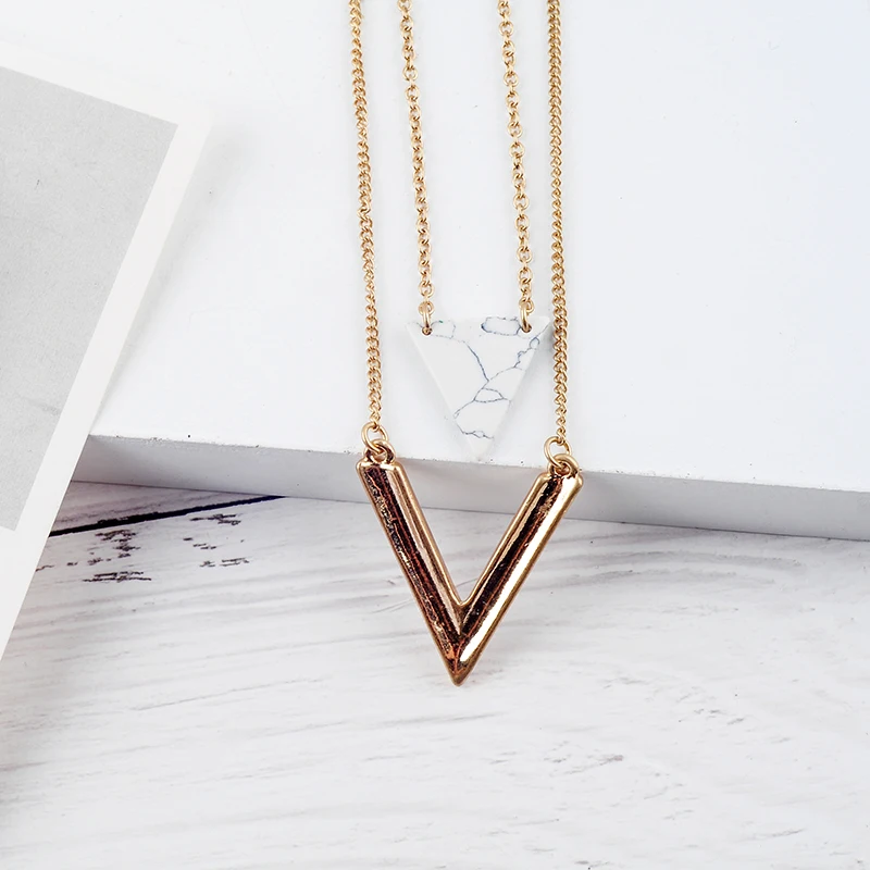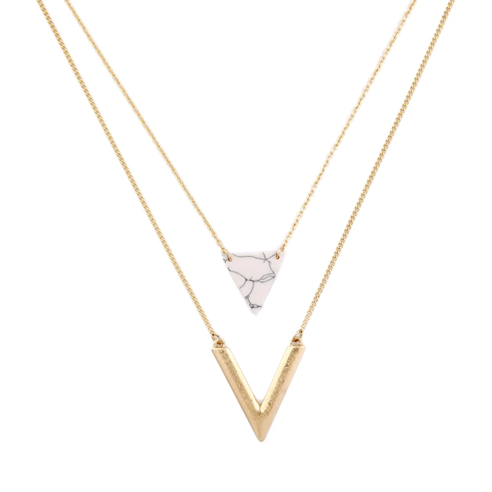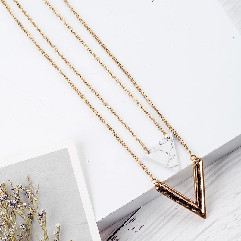 Ожерелье женское с кулоном в форме треугольника, золотого цвета, многослойная цепочка