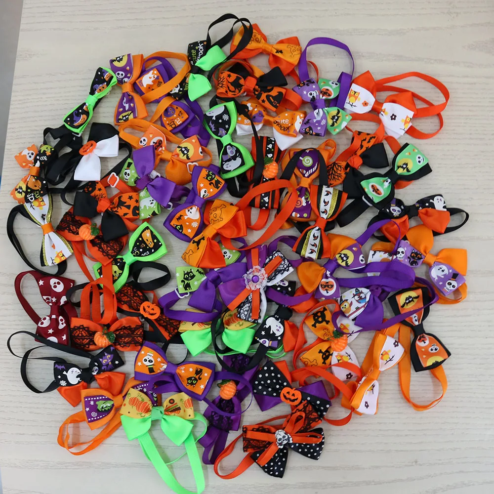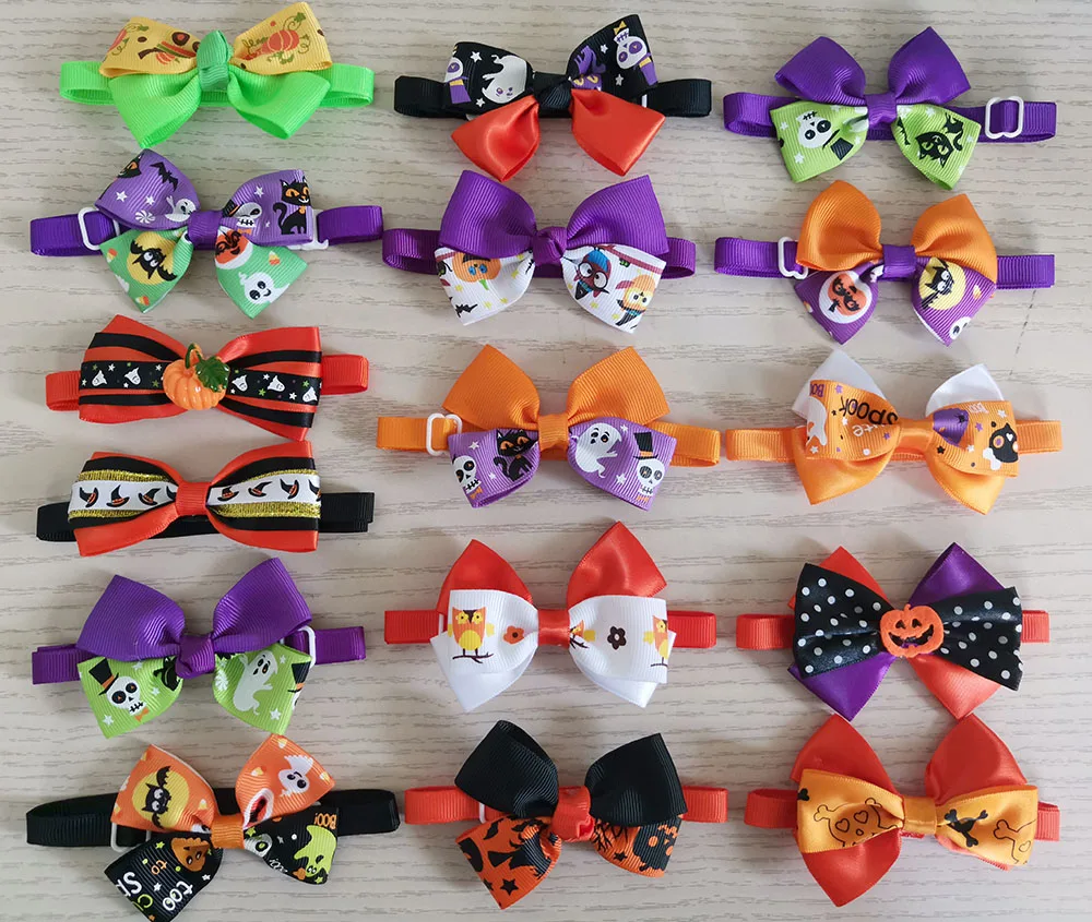 Оптовая продажа 100 шт. Хэллоуин аксессуары для собак из тыквы череп галстук-бабочка для собаки кошка собака щенок галстук-бабочка для отдыха и вечеринок для домашних животных